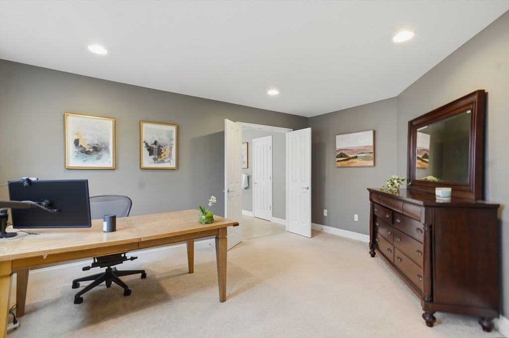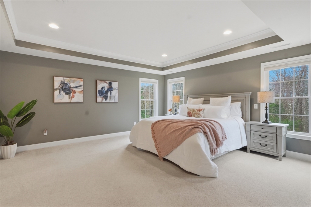 Stately colonial in Acton's coveted Robbins Mill Neighborhood offers exceptional comfort & style! Stunning two story foyer w/ hardwood floors welcomes you, flanked by dining room & a spacious sitting room flowing to bright & open living room w/ vaulted ceilings. Fireplaced family room opens to massive chef's kitchen featuring granite countertops, SS appliances, pantry, & oversized kitchen island w/ seating. A separate breakfast nook w/ slider access to composite deck overlooking property. Private study features remarkable millwork built ins w/ french doors. A powder room & laundry complete 1st FL. Don't miss the luxurious primary suite w/ spa-like bath, dressing room, & walk-in closet. Three add'l beds & 2 baths complete the 2nd level. Endless potential awaits in the walkout lower level w/ high ceilings perfect for future playroom, media room, or possible in-law suite. The mature landscaping provides privacy & conservation views. Easy access to parks, nearby rail trail, & major routes!