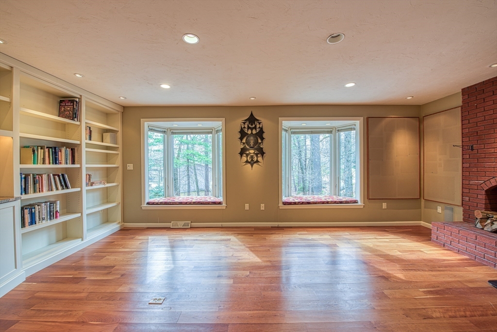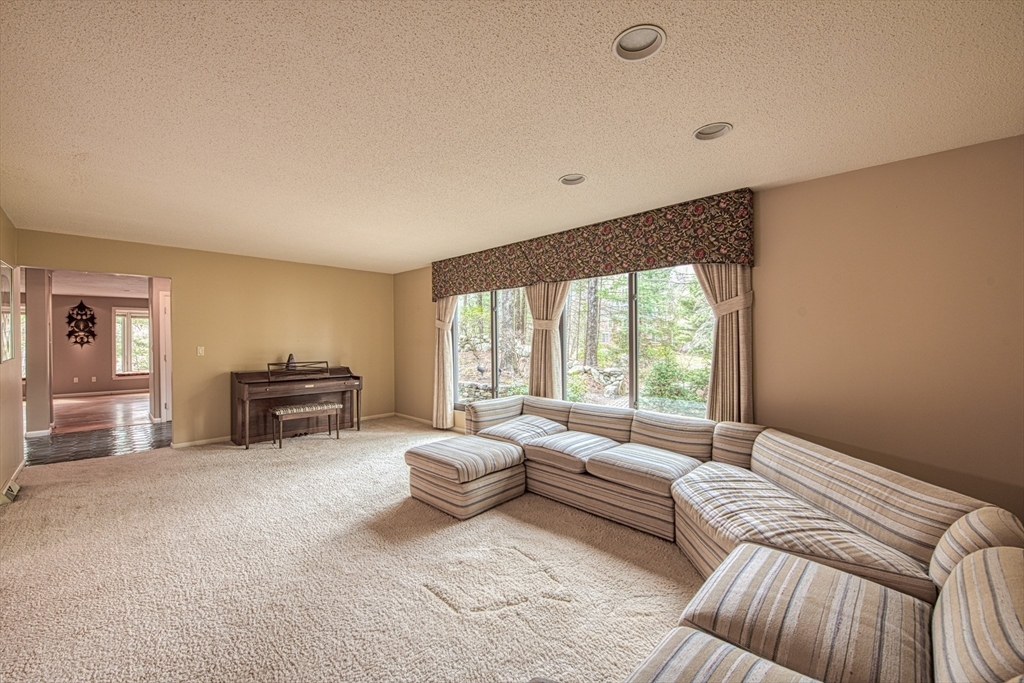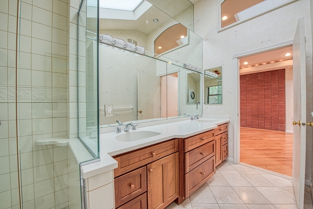 Magnificent CUSTOM BUILT Contemporary Colonial set back off the street providing privacy and sense of seclusion in one of Sharon's most desirable executive communities. This elegant home boasts 4 bedrooms plus BONUS GUEST ROOM on first floor, 4 full baths and over 4,000 square feet of living space. The heart of the home is the OVERSIZED Family Room with wood burning stove, bay windows/window seats and wall of built in bookcases. The inviting living room opens to elegant dining room and bright and sunny kitchen with circular eating area, skylights and plenty of counter and cabinet space. The screened porch off the kitchen provides a tranquil oasis. Second floor boasts 4 spacious bedrooms and full bath including a gracious Primary Suite, complete with VAULTED CEILING/SKYLIGHTS, en-suite bath and large walk in closet. The amazing lower level with SEPARATE ENTRANCE includes an all purpose room PLUS 4th FULL BATH, wet and dry sauna, slider to stone patio and access to 2-car garage.