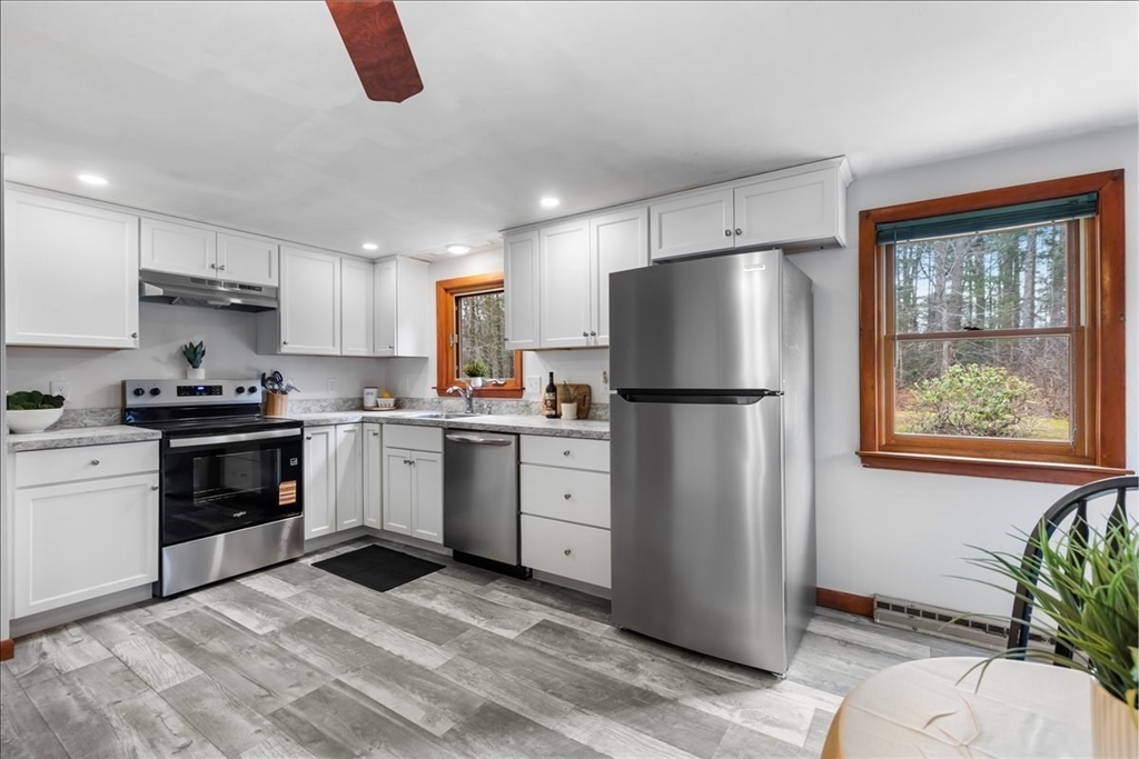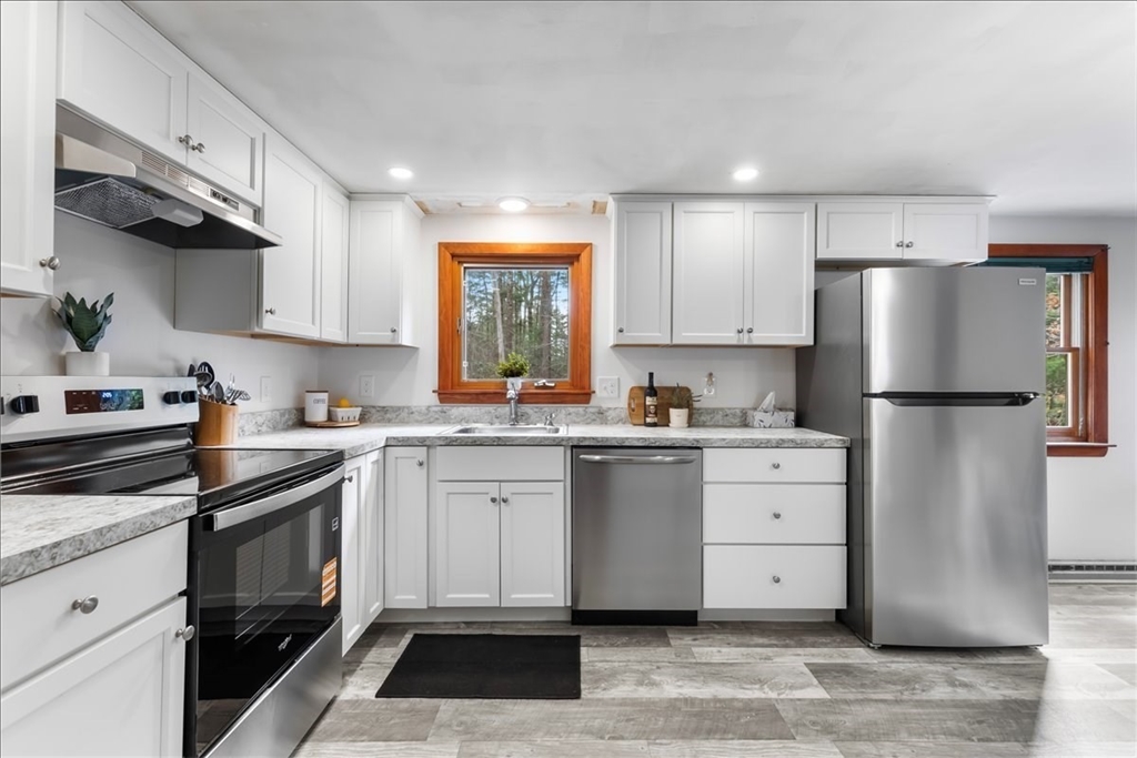 Adorable 3-bedroom ranch set on a beautiful 1.05-acre lot, offering a great opportunity to build equity while making it your own. This solid, well-loved home features easy one-level living, a cozy fireplace, and a bright, functional layout. The kitchen and bath were updated in 2020, along with new flooring—LVP in the kitchen & bathroom and hardwood in the hall and bedrooms. Living room is original hardwood. The spacious walk-out basement offers excellent potential for additional living space, storage, or a workshop. Enjoy a generous backyard with plenty of room to relax, garden, or entertain.Home needs cosmetic updates and is being sold as-is. Title V failed, roof approx. 23 years old, and front steps need repair—ideal for buyers looking to add value. Home warranty included for added peace of mind. A rare chance to own just over an acre in Halifax at an accessible price point. First showings at Open House Saturday 4/11/2026 11:00am-1:00pm.