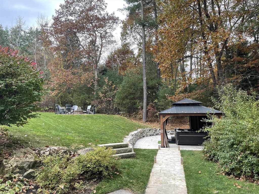 Welcome home to this beautifully updated Colonial set on 2+ acres in Boxford’s sought-after Townsend Farm/Winding Oaks neighborhood. Offering over 2,200 sq ft on the first floor, this home blends timeless charm with modern updates. The inviting family room features custom built-ins, a wet bar, & gas fireplace—perfect for relaxing or entertaining. A traditional layout is enhanced by versatile spaces, including a spacious bonus room & sun-filled sunroom ideal for a home office, game, or billiards room. Hardwood floors, skylights, & quality craftsmanship throughout. The eat-in kitchen with quartz counters opens to a multi-tiered composite deck for seamless indoor-outdoor living. Upstairs offers three generous bedrooms, a full bath, and spacious primary suite with gas fireplace. The finished lower level provides additional space for a media room, gym, or playroom. Enjoy the saltwater Caldera hot tub with gazebo or unwind by the fire pit. A commuter’s dream—don’t miss this rare opportunity!