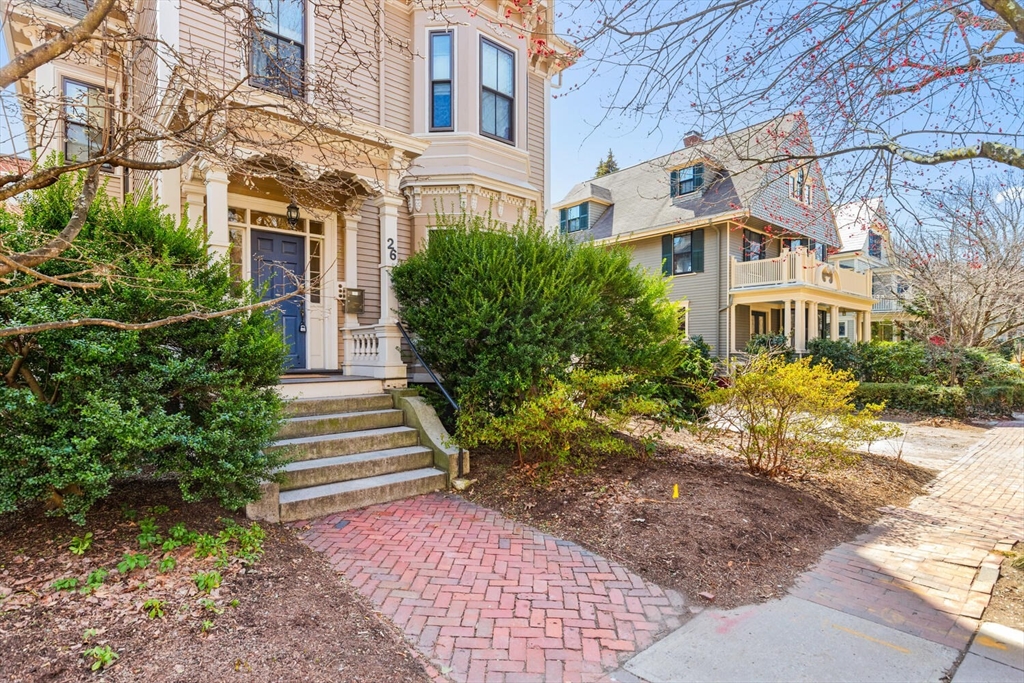 Charm, privacy, and convenience all in one package. Incredible Cambridge location WITH PARKING for under $600k! Situated on the top-floor of a classic Mansard Victorian surrounded by equally gorgeous homes and brick sidewalks on tree-lined Linnaean St, you'll be 0.4 miles from Porter Sq and 0.8 miles from Harvard. Endless dining and entertainment options and a vibrant arts and culture scene right outside your doorstep. This unit has two spacious bedrooms and a comfortable living space, and windows on all four sides let in natural light without sacrificing privacy. In the basement is a private storage room and a young heating system (replaced 2022) and hot water tank (replaced 2022). Your assigned parking spot at the end of the driveway will make commuting by car a breeze. Owner occupants can take advantage of Cambridge's generous residential exemption to drastically reduce your annual property tax bill (by $3,403 in FY 2026). This opportunity to own in Cambridge is not to be missed!