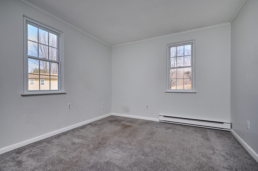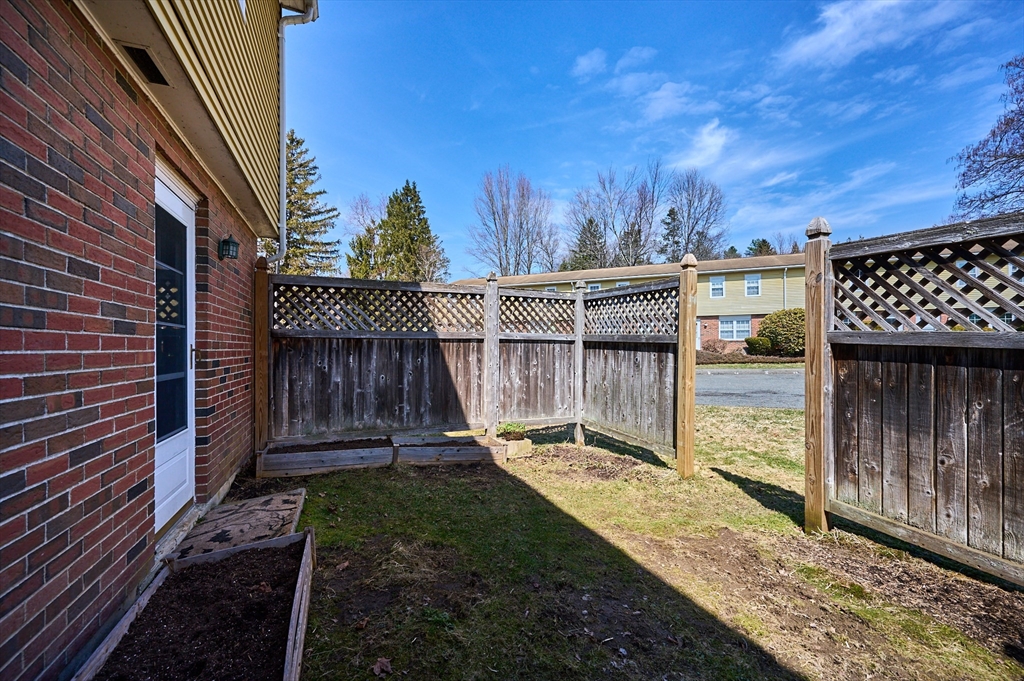 Why rent? Will you be the lucky buyer of this 2 bedroom, 1 bath, end unit townhouse in the well-maintained Jeffrey Amherst Manor, adjacent to Crocker Farm Elementary School? You will enjoy the southern exposure & the convenience of taking the PVTA bus right at your front door so to speak. Within minutes you commute to Amherst Center, Hampshire & Amherst Colleges & UMASS. Updates include a new stove, new hot water heater, remodeled bath (shower, fixtures, painting), replacement windows (done under prior owner) & fresh interior painting. Take refuge in your private patio off the dining room. Use the coin-operated laundry in the common basement area where the dedicated storage units are also located. These facilities are only for the occupants of this six-unit building. Owner may have 1 indoor pet (cf. attd Rules and Regs.) See the opportunity? Now grasp it!