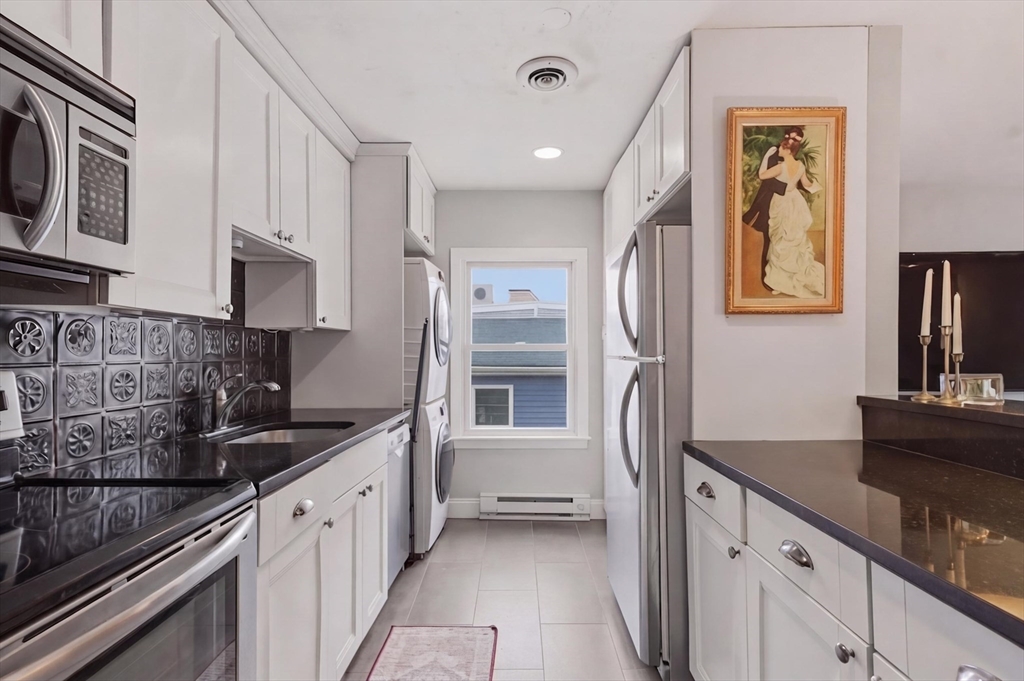 Do not miss this renovated top-floor corner unit in the historic gaslight district! This condo is bright, thoughtfully designed, and move-in ready.The open-concept living and kitchen area is anchored by a granite service bar, w/ stainless steel appliances, a decorative tile backsplash, and generous cabinet and pantry storage.The oversized bedroom comfortably fits a king bed and features an exposed brick accent wall with double closets and custom built-ins.The renovated bathroom is highlighted by the subway tile surround, rainfall shower, and modern vanity. Hardwood floors throughout, in-unit laundry, and a shared rear patio complete the unit. All this ideally located just outside City Square and a short distance to the North End, TD Garden, and West End. Commuter friendly and incredibly convenient with the orange line .3 miles away, quick access to 93 and Whole Foods, and numerous bars and restaurants in the neighborhood. Pets considered on a case by case basis.