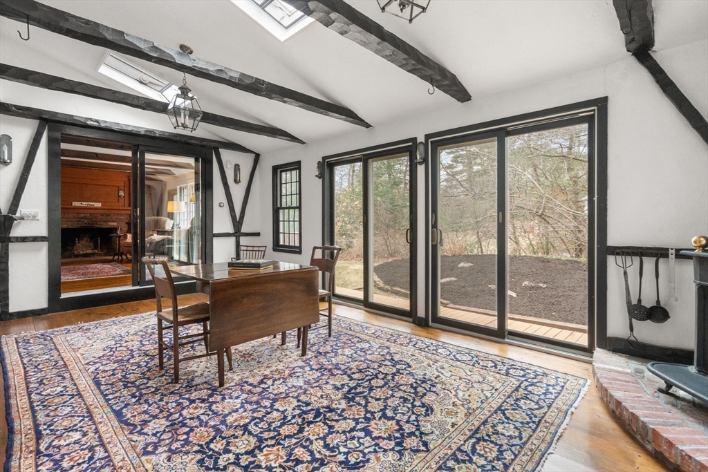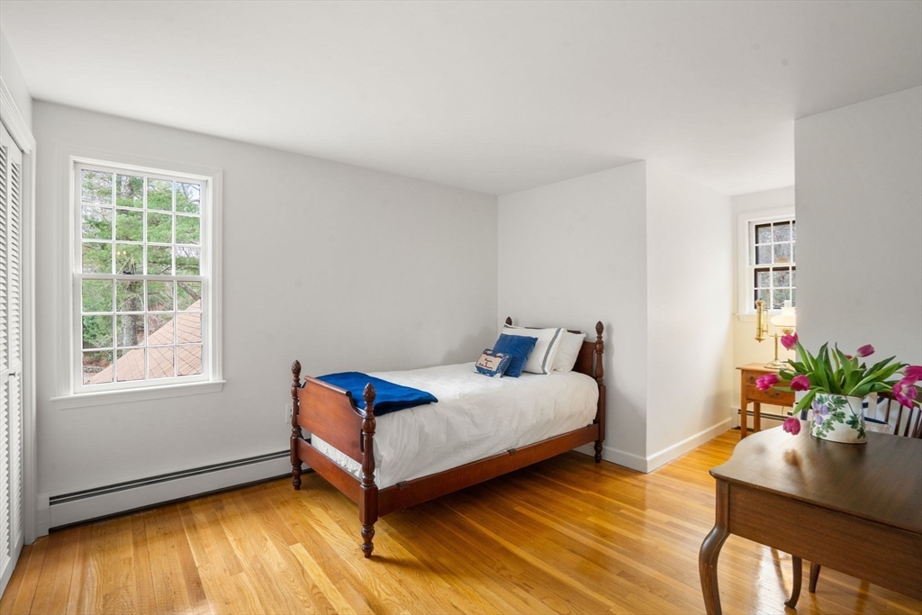 Welcome to this 4 bedroom Colonial, tucked away on a desirable cul-de-sac, moments to restaurants, shops & the school complex. The 1st floor offers a front to back living room, dining room & white kitchen w/ stainless steel appliances, plenty of storage & full bath with laundry. The adjacent den/family room offers a triple window, fireplace & beautiful custom built-in cabinetry. Just off the family room is a sunroom with a vaulted ceiling, skylights & walls of glass - plus double doors leading into the fireplaced living room, creating a great flow for everyday living & entertaining. Upstairs, you’ll find 4 comfortable bedrooms w/ ample closets and 2 full tiled baths. The lower level offers great potential to finish & create additional living space, such as a 2nd family room or playroom. This 2 story home features hardwood floors throughout, 3 full bathroom and a top-of-the-line, nearly new HE gas heating system. There is an oversized 2 car attached garage to complete the package!