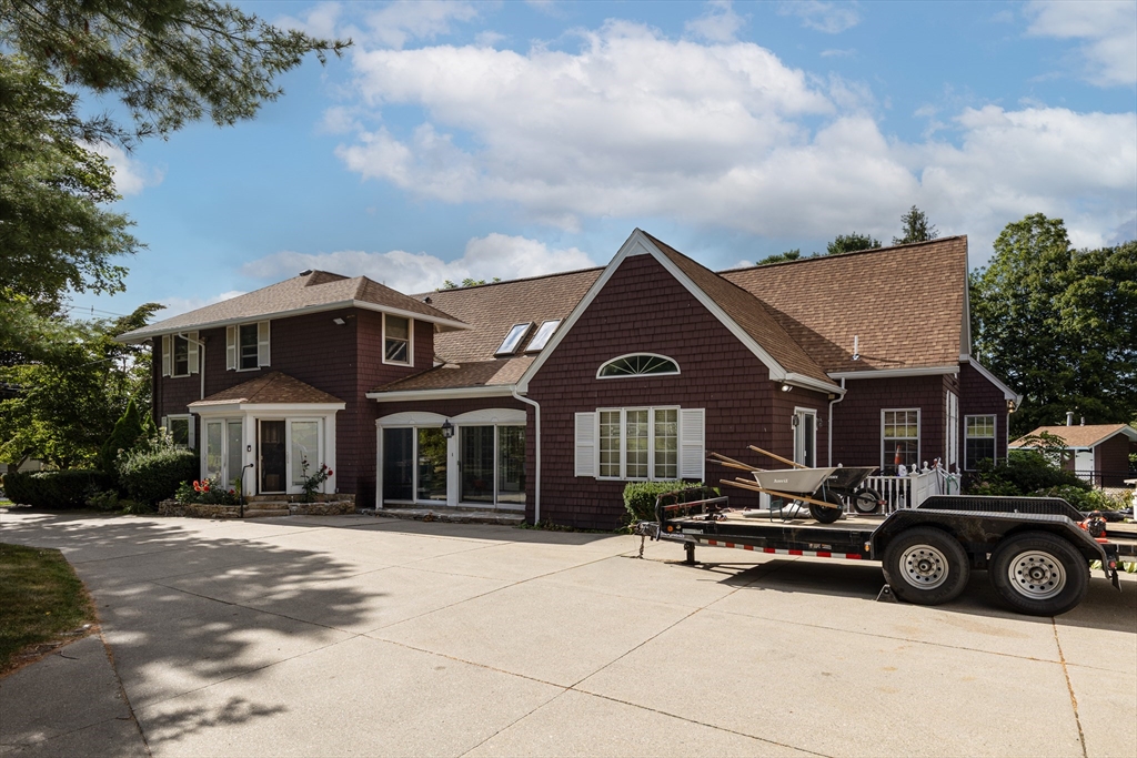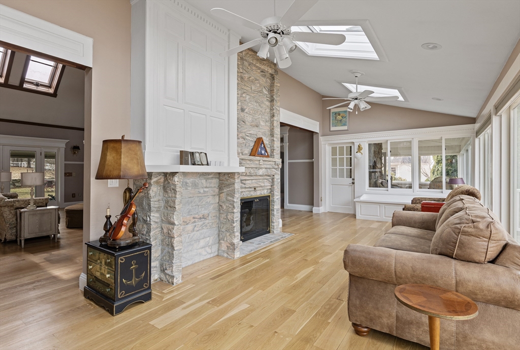 Situated in a pedigree location just off the Town Common and Historic District, this remarkable colonial home with Craftsman influence and a stunning addition/remodel is unique in its beauty and design. The sale comes with an adjacent 1ac house lot w/sewer and water. FHW heat in main; FHA hybrid (electric heat pump, backed up by oil). Separate cen air handler in attic of main house; fha furnace for addition. Extensive renovation including roof, heating systems, interior paint, multi-coat paint on kitchen cabinets. Hardwood flooring throughout most of the home. Family room w/soaring 2-story ceiling and stone fireplace. 1st floor en suite primary BR w/large bath that has separate vanities, steam shower, large jetted tub (heater not working). Formal dining w/fireplace. First floor liv rm/office w/cathedral ceiling and half bath. Appx 1,000 SF finished in LL and includes laundry and ironing room. Dumb waiter goes to all 3 floors. Gentleman's barn. Inground pool.