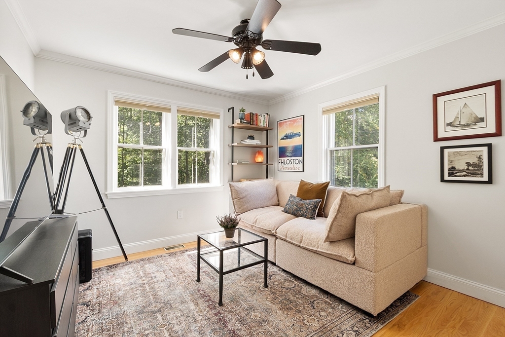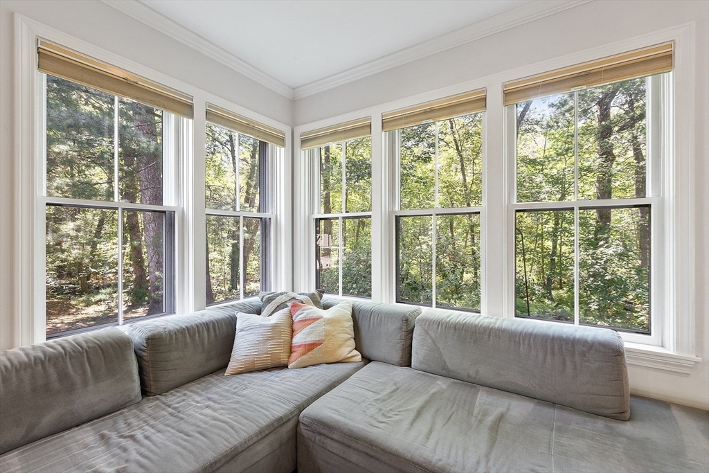 Tucked at the quiet edge of Battle Road Farm, this 3BR, 1.5BA townhouse offers serenity steps from Minute Man National Park. Sunlight pours through five living room windows, framing woodland views and a cozy wood-burning fireplace. Enjoy an upgraded kitchen with granite counters, renovated baths, hardwood floors, and crown molding. Unique four-sided window exposure fills every room with light, while a private patio invites morning coffee amid birdsong. Modern touches include a smart EcoBee thermostat, keyless Schlage entry, and Ring doorbell. Recent updates to the AC, furnace, and water heater ensure care-free living. Perfectly placed between farms and city alike, with top-rated schools and easy access to Route 95, just 20 min to Boston—a peaceful haven where nature meets convenience.