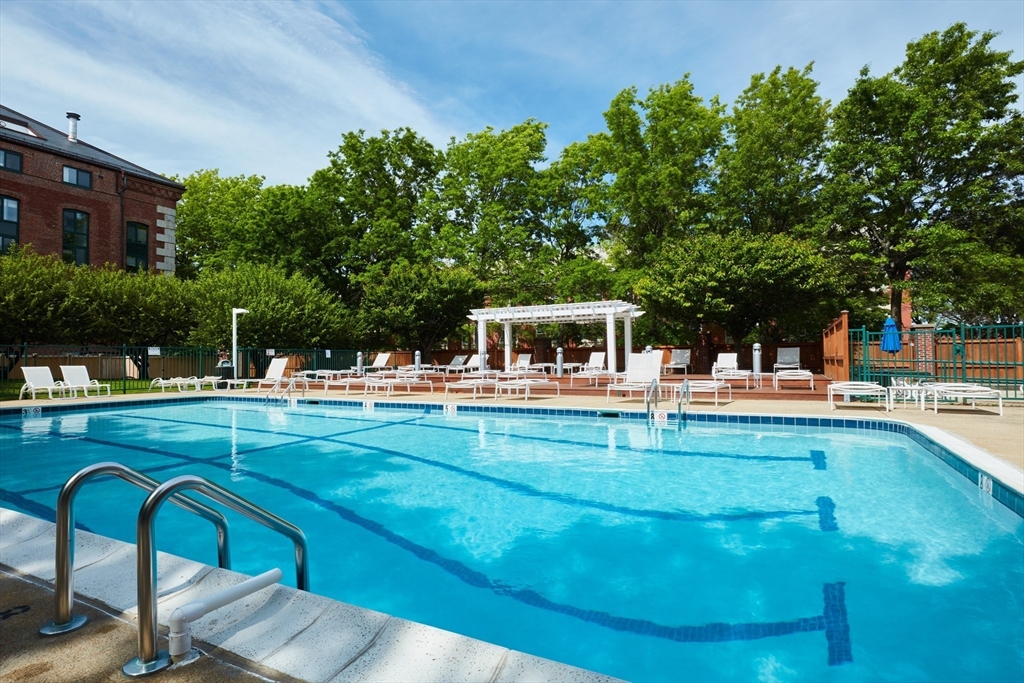 Charlestown Waterfront - Parris Landing - This immaculate studio w/valet parking and central air is designed for a simple lifestyle or pied-a-terre with everything you need. The kitchen is decorated with white cabinetry, Carrara marble breakfast bar and Bosch stainless steel appliances. Exceptional features include a marble-tiled bath, a Murphy bed, hardwood floors, two custom closets, high ceilings and lots of natural light.The living area is spacious and offers a floor to ceiling window that overlooks the courtyard. Parris Landing is a professionally managed building and offers amazing amenities such as: 24-hour concierge, state-of-the-art fitness center, outdoor heated pool w/cabana, barbecue area, Club Room, Business Center, guest parking, Amazon lockers, Dog Park and more! Easy access to major highways, North End, Cambridge, Water Shuttle to the Financial District, Partners Bus, MGH, Spaulding Rehab, MGH Institute, Logan Airport. Pet friendly.