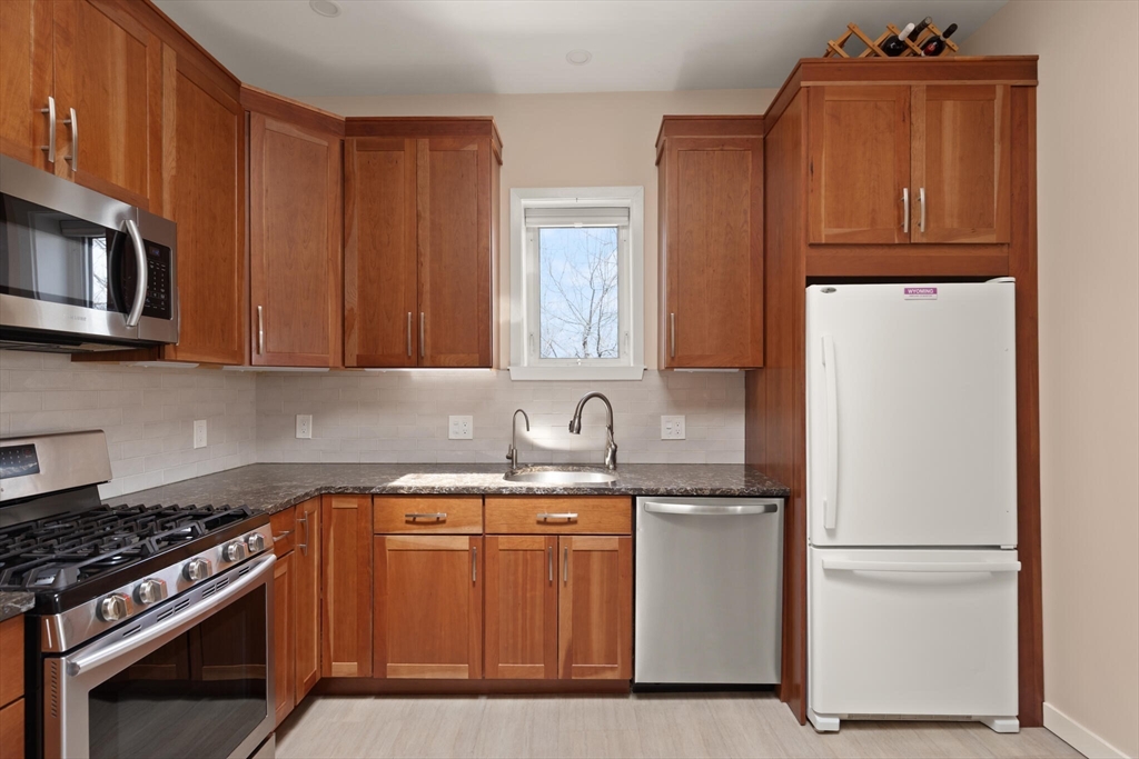 Experience elevated living in this skylight abundant penthouse unit at 515 Pleasant St, perfectly situated in the vibrant heart of Melrose. As a top-floor resident, you’ll enjoy a premier perspective overlooking the Wyoming Hill Train Station (Purple Line), making this a commuter’s dream with doorstep access to Boston. For added transit flexibility, bus service to the Orange Line at Oak Grove is available directly outside the building. The interior features thoughtful upgrades, including luxury vinyl plank flooring in the kitchen, kitchen counter lighting, and an iSpring water filtration system at the kitchen sink for pure, crisp water. Convenience is paramount with one deeded parking spot located for easy, immediate access. Centrally located near the best local boutiques and dining, this unit offers the perfect blend of top-floor tranquility and an unbeatable downtown location.