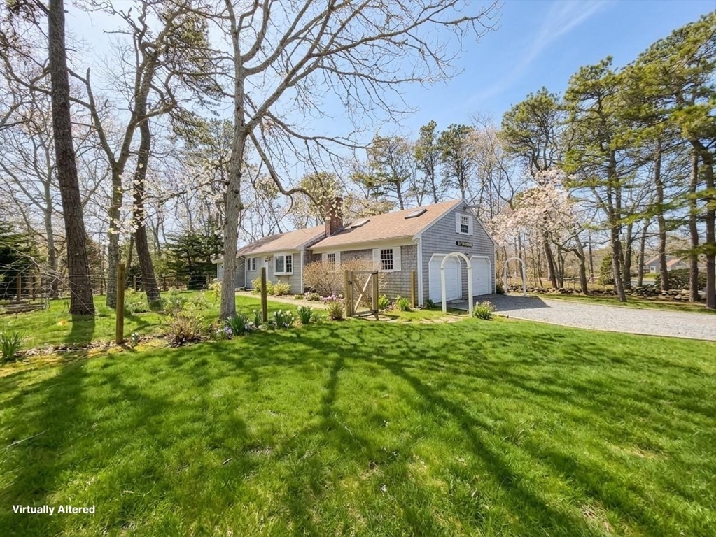Just 0.7 miles to South Orleans Beach and close to Nauset Beach, this well-situated home offers privacy, convenience, and a setting that puts some of the Lower Cape’s best outdoor amenities close at hand. Set on a large corner lot near the Brewster-Orleans line and accessed from Timberlane Drive, the property is tucked behind a natural screen of trees, creating a peaceful feel. The living room features decorative exposed beams, a bay window overlooking the front yard, and a gas fireplace, while the dining area opens to the back patio. The kitchen includes a convenient coffee nook and connects easily to the main living areas, offering an open feel while still maintaining separation. The spacious primary bedroom includes access to a private half bath, which connects to a full hall bath with tub. The second bedroom includes a walk-in closet. Additional features include an Ecobee smart thermostat, a full basement with interior access and brand new bulkhead, and a garage with workshop space