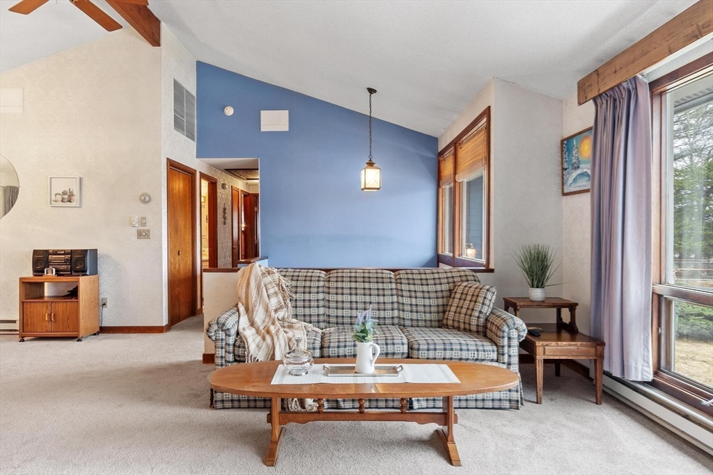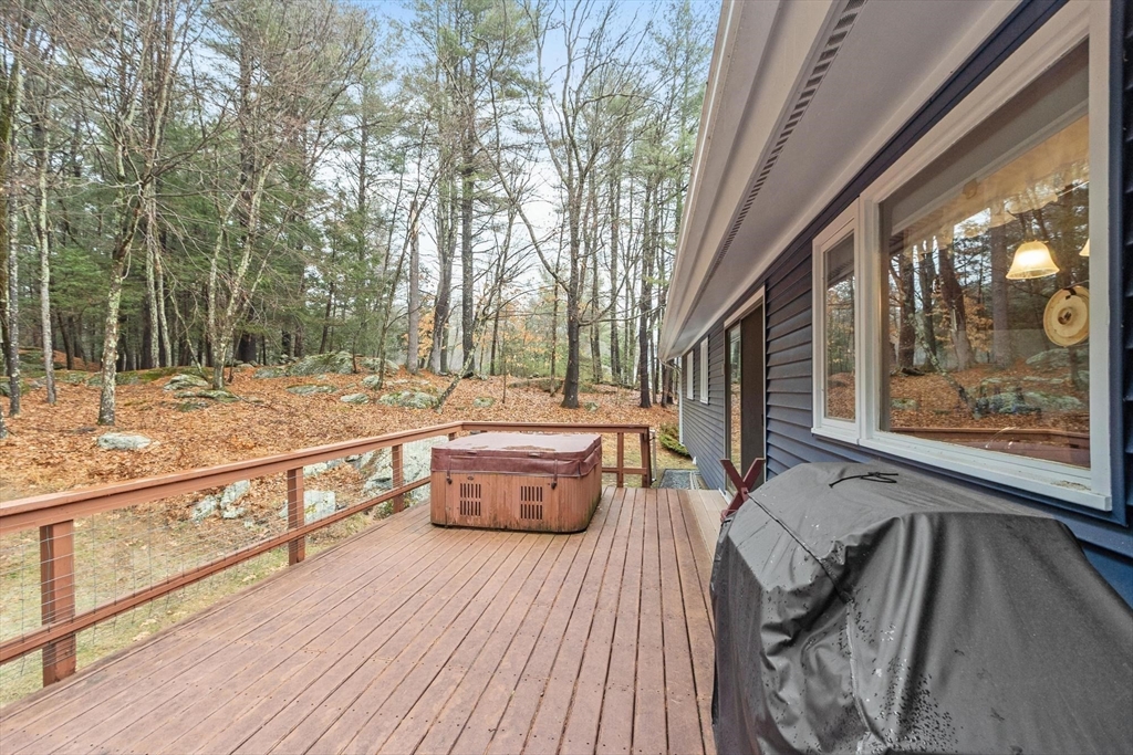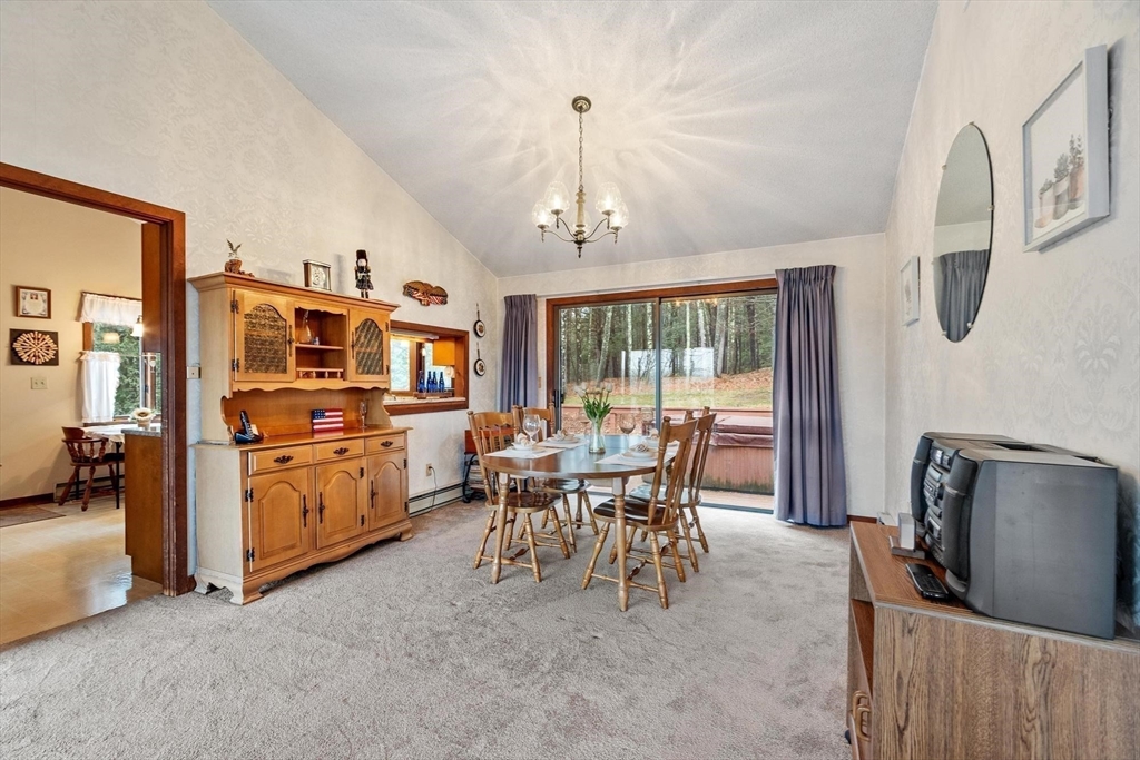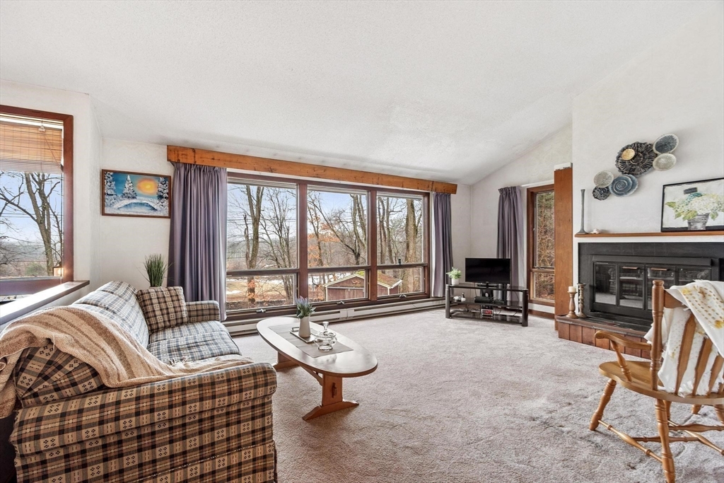 Custom-built by the original owners, this beautifully maintained home on the Harvard line offers an open, airy floor plan with cathedral ceilings and stunning views. Enjoy sunrises from the living room, where natural light fills the space. The main level features a living room with fireplace, dining room with slider to the deck, kitchen, three bedrooms and two full baths, including a primary suite with private bath. The lower level offers a pellet stove with plenty of space for future family room. Step outside to your own private oasis featuring an in-ground pool, set on a peaceful 1.33-acre lot. The property abuts conservation land with scenic walking trails directly behind the home, offering both privacy and a connection to nature. Additional highlights 2 car garage, central a/c, updated vinyl siding and roof. Truly a special home!