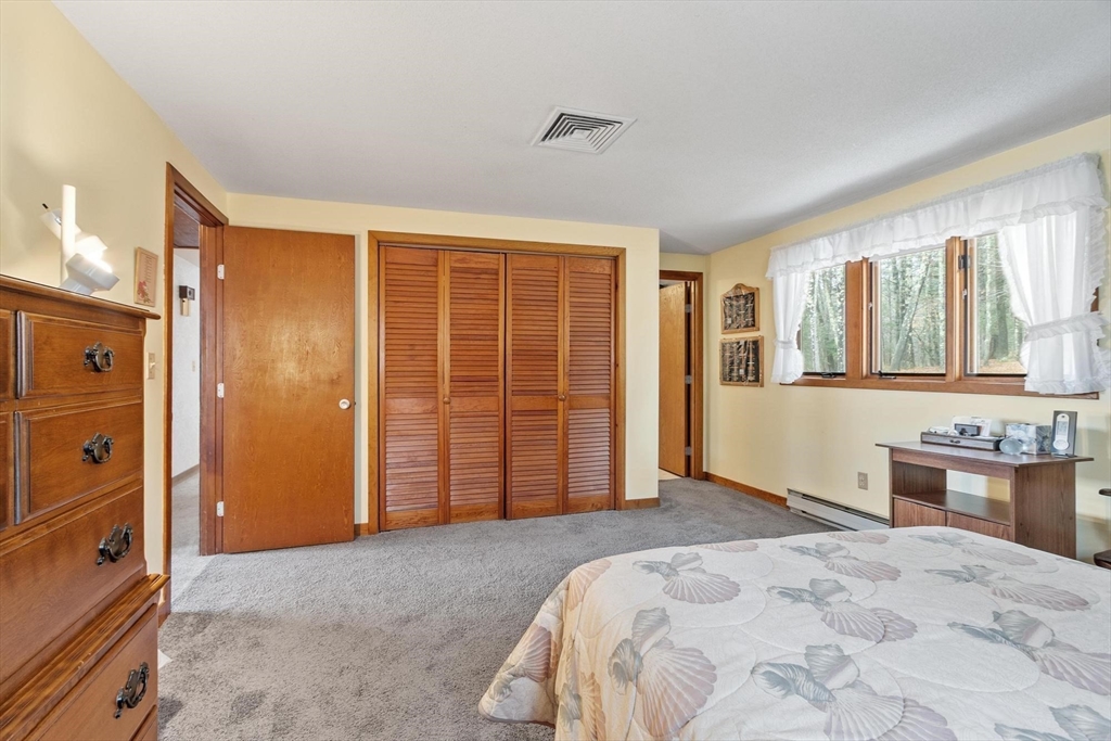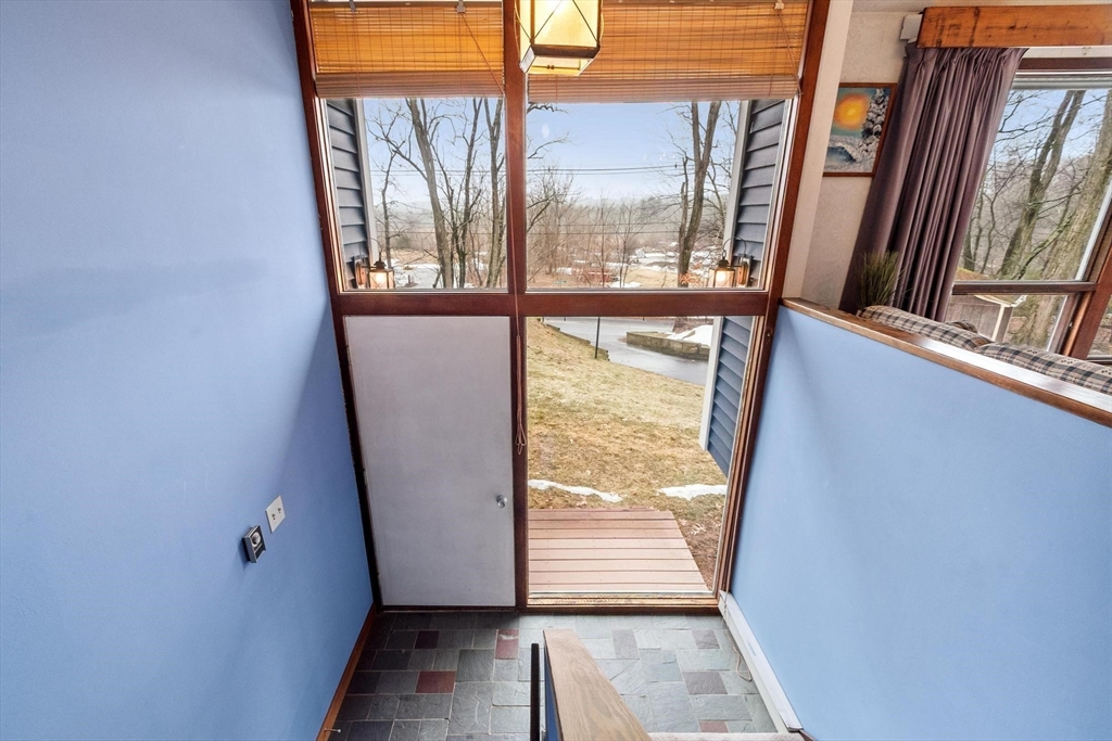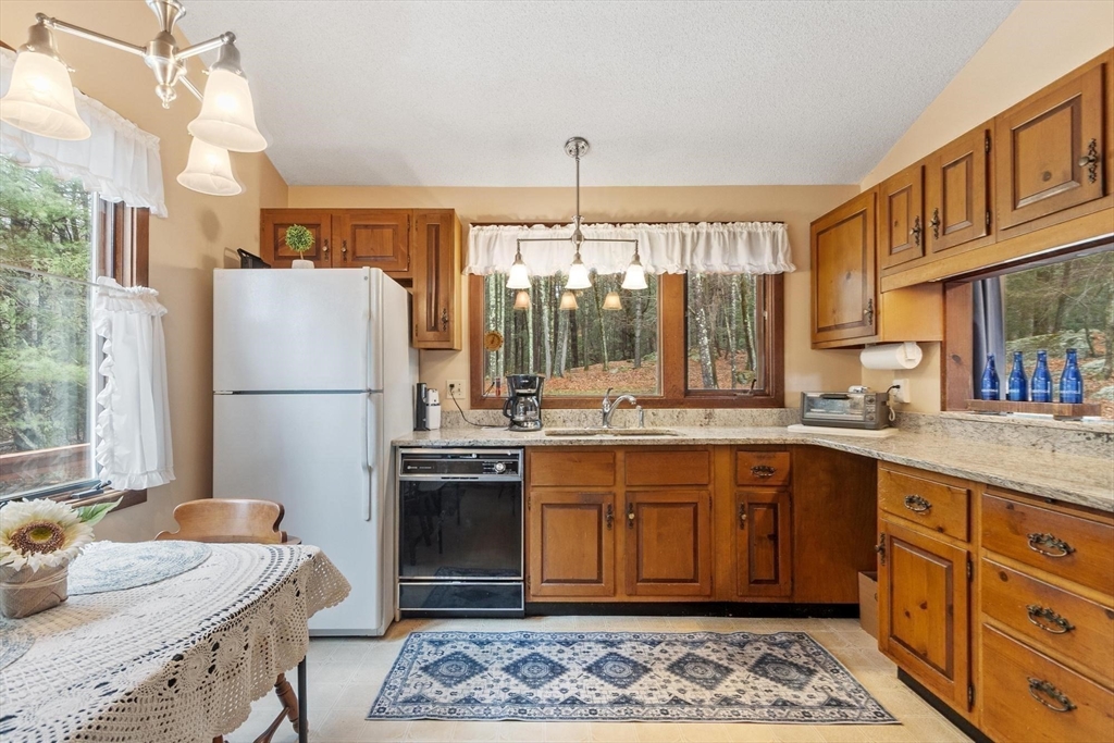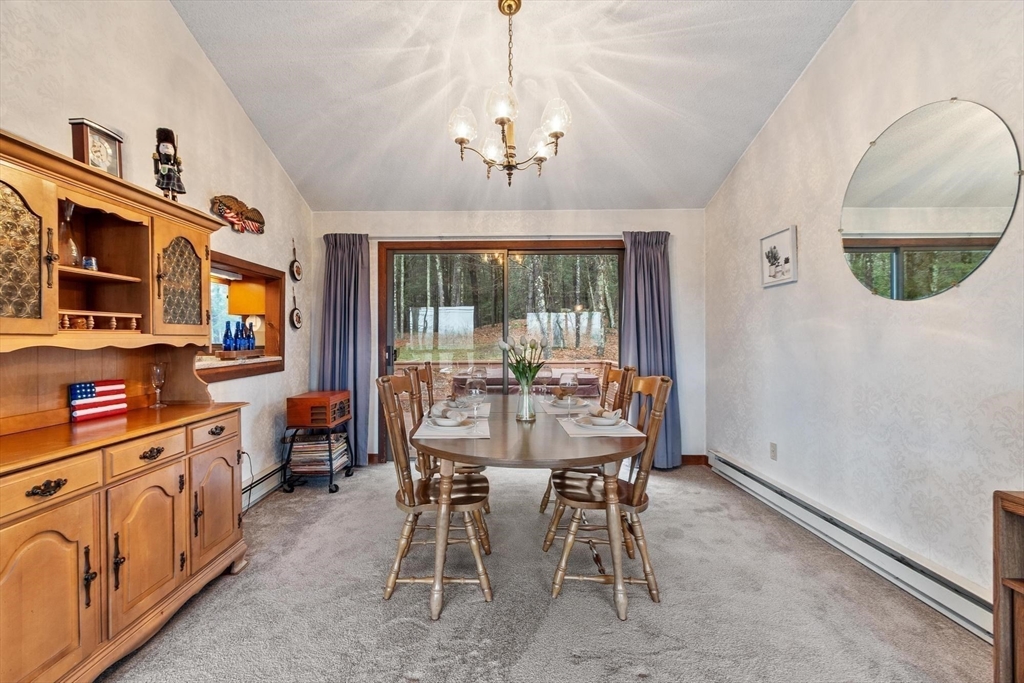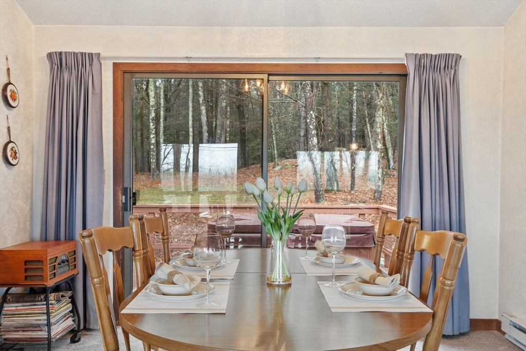 Custom-built by the original owners, this beautifully maintained home on the Harvard line offers an open, airy floor plan with cathedral ceilings and stunning views. Enjoy sunrises from the living room, where natural light fills the space. The main level features a living room with fireplace, dining room with slider to the deck, kitchen, three bedrooms and two full baths, including a primary suite with private bath. The lower level offers a pellet stove with plenty of space for future family room. Step outside to your own private oasis featuring an in-ground pool, set on a peaceful 1.33-acre lot. The property abuts conservation land with scenic walking trails directly behind the home, offering both privacy and a connection to nature. Additional highlights 2 car garage, central a/c, updated vinyl siding and roof. Truly a special home!