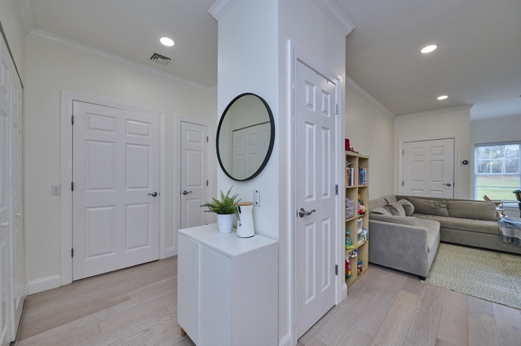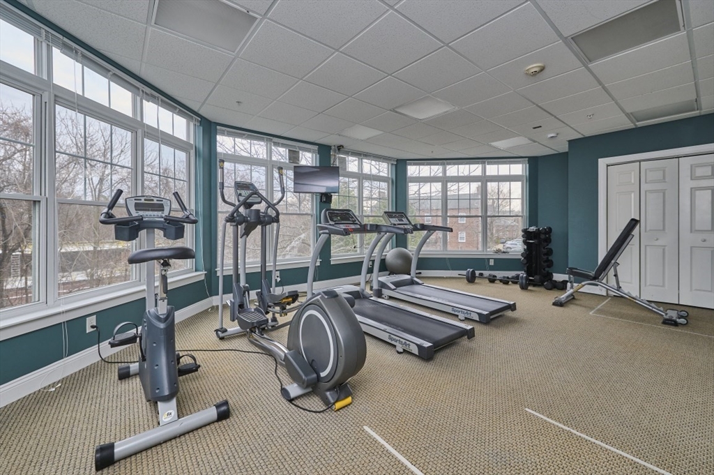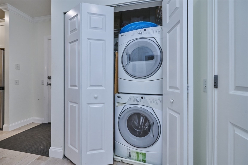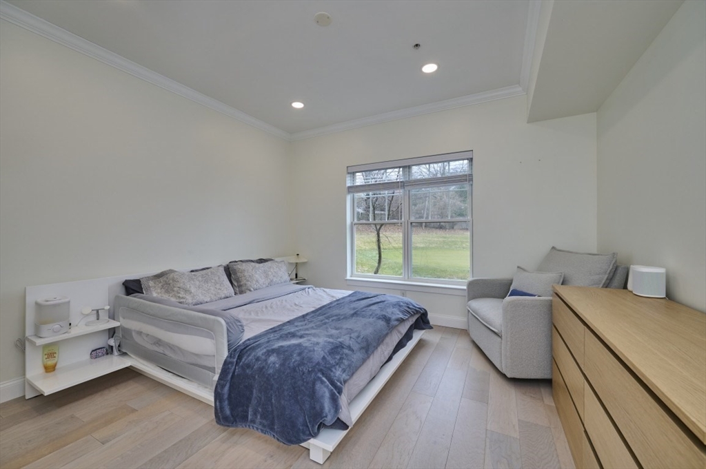Step into this stunning, completely renovated contemporary condo that perfectly blends designer style with serene golf course views. This is not your typical cookie-cutter unit; every inch has been transformed within the last five years. The open floorplan features engineered hardwood floors throughout, a modern kitchen with shaker cabinets, quartz countertops, subway tile backsplash, and gas cooking. Both full baths are true retreats, boasting dove-grey cabinetry, white quartz counters, and a primary suite with a custom walk-in rain shower, frameless glass, and marble-patterned tile. Open floorplan with breakfast nook overlooking the golf course. Additional features include in-unit laundry, central heat/AC, extra storage, and two parking spaces, including one garage spot. This pet-friendly building also offers a fitness room and a common roof deck. Located just steps from the MBTA, this home offers the perfect balance of city access and quiet luxury. Schedule your private tour today!