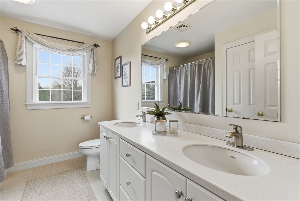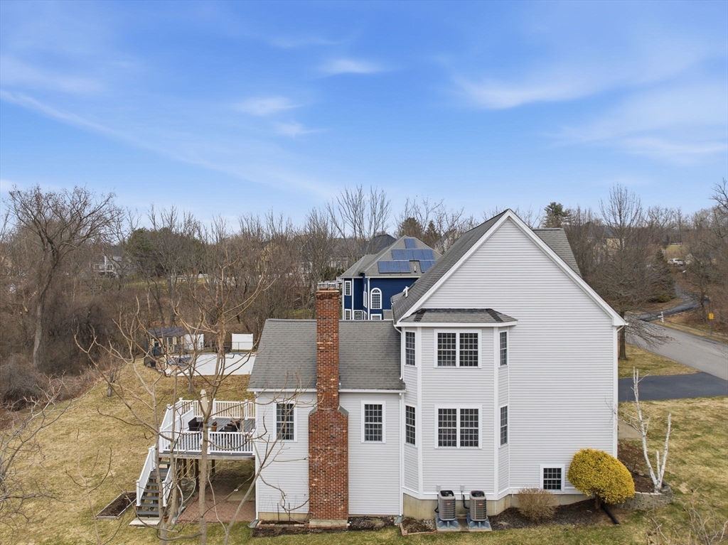 Located in the highly desirable Highfields Golf & Country Club, this beautifully maintained four-bedroom Colonial offers space, style, and functionality. A dramatic two-story foyer & gleaming hardwood floors welcome you inside. The eat-in kitchen features cherry cabinetry, center island & opens to a stunning cathedral family room with floor-to-ceiling stone fireplace. Step out to the expansive composite deck overlooking a large, private backyard. The formal dining room showcases a tray ceiling, crown molding & wainscoting. A first-floor office and laundry add convenience. A front living room offer more space to entertain Upstairs, hardwood floors continue throughout. The spacious primary suite offers vaulted ceilings, sitting area, & a bath with dual sinks and corner Jacuzzi tub. Three additional bedrooms & a full bath with dual vanities complete the second floor l. Walk-out lower level offers excellent potential for future finishing. One-owner home in a premier golf course community!