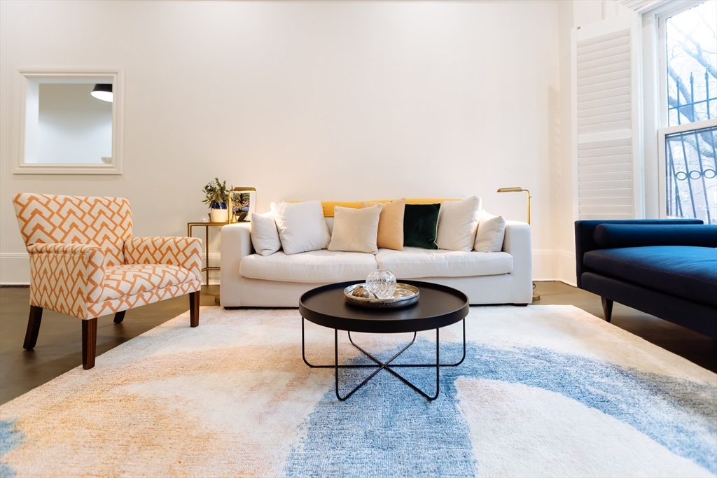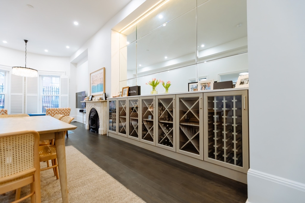 Set on a picturesque tree-lined South End street, this property offers a rare combination of classic brownstone charm, exceptional scale, and two tandem parking spaces.The main living level is a standout, featuring approximately 12-foot ceilings, elegant crown molding, and an unusually wide (~22’) open-concept layout—an uncommon offering in the South End. The expansive living and dining areas are complemented by custom built-in cabinetry, providing both architectural detail and functional storage.Additional features include gas cooking, two gas fireplaces, forced air heating, central air, and a gas line for outdoor grilling. Recent updates include building repointing, front stair improvements with added under-stair storage (2025), renovated vestibule (2020), and a Comelit video entry system.Strong location near South End dining, parks, and neighborhood amenitie
