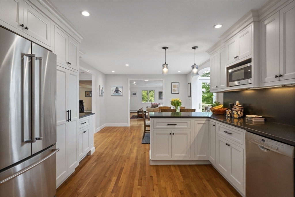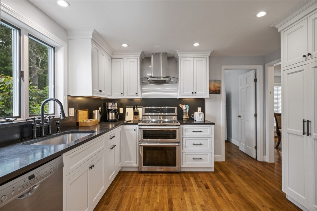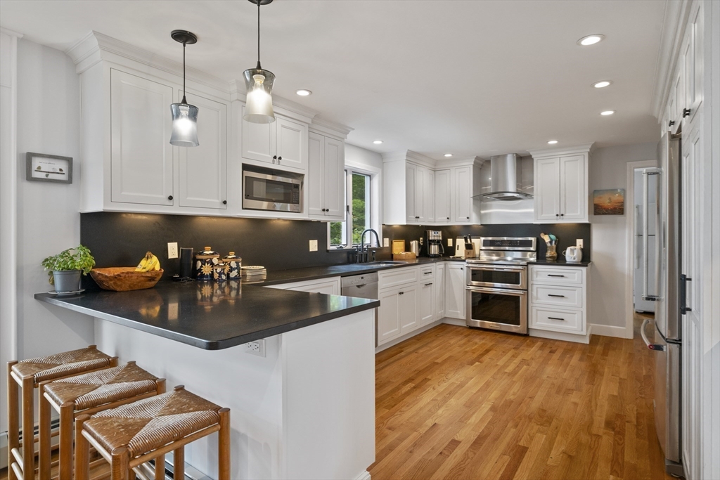 Situated on over a half acre of land and in one of the most desirable neighborhoods of Swampscott, this is a unique opportunity to own this property. There are only eight houses on the dead-end side of Forest Avenue with the Stanley Elementary School and the 7.3 acre Ewing Woods Conservation area at the end. The property is wooded with an open and large backyard. The ten room house offers 3,772 sf of living space on two levels plus finished rooms in the lower level. The foyer is two stories high and cascades the home with natural sunlight. The living room has a vaulted ceiling and features a large fireplace. The eat-in kitchen is spacious and has a large foot atrium to allow more natural light into the house. There is a formal dining room. Completing the first floor are two family rooms with a double fireplace. The second floor offers four bedrooms including a spacious en-suite with large walk-in closet. The lower level has a family room, exercise room, bonus room and bath.