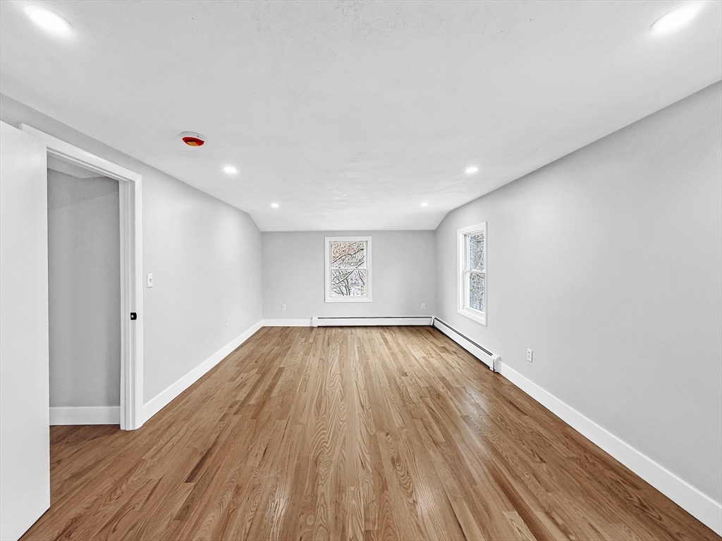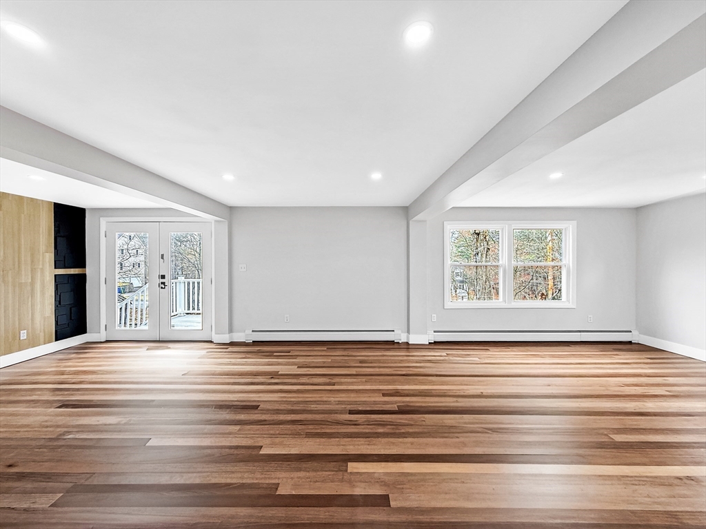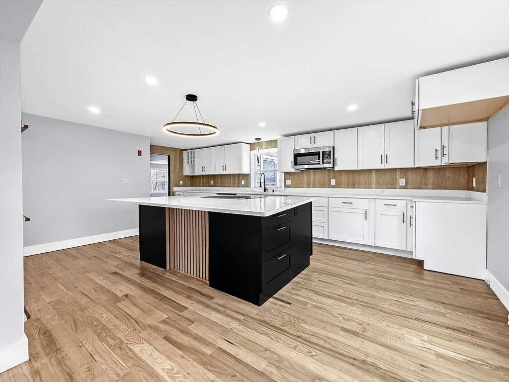 Fully renovated Dutch Gambrel offering a flexible layout designed for modern living. Desirable Burlington line location. The main level features a spacious living room with fireplace, a large sleek kitchen with abundant natural light, a full bathroom, and a bedroom ideal for guests, in-laws, or a private home office. Upstairs includes three additional bedrooms, a dedicated office space, laundry, and a second full renovated bathroom, providing separation and functionality for growing households. The home sits on a generous yard with ample outdoor space and parking for up to six vehicles, perfect for everyday convenience and entertaining. Located with easy access to Burlington’s shopping, dining, and major routes, including Route 95, this home offers the space, condition, and location today’s buyers are looking for. The seller will install a new septic system prior to closing. Move-in ready and designed to adapt to your needs, schedule your showing and see the potential for yourself.