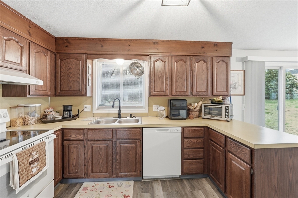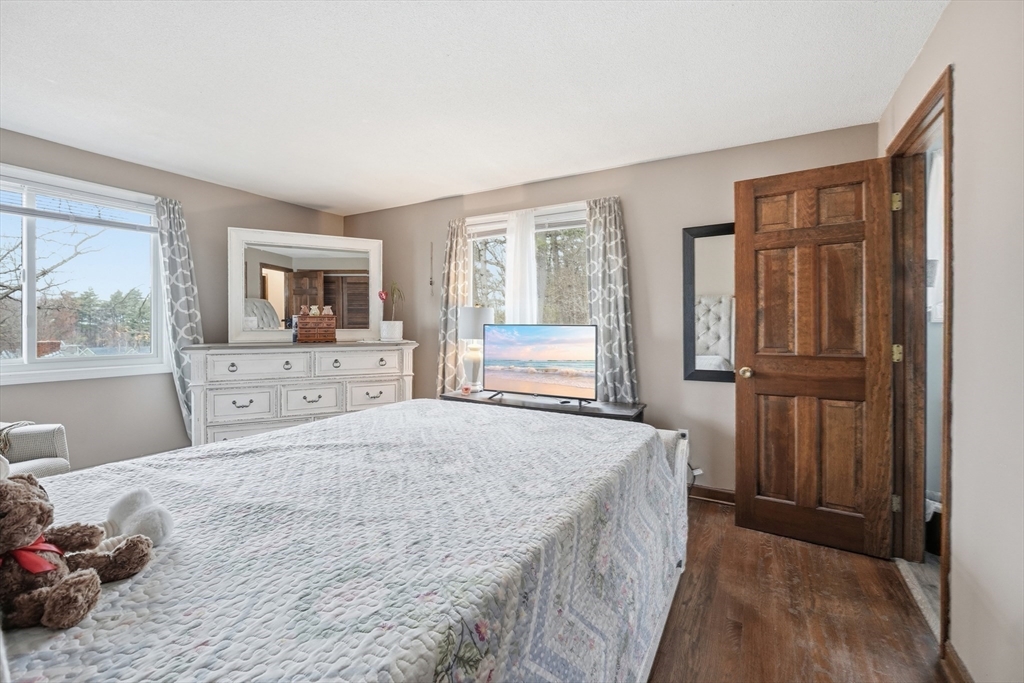 Location, Location, Location! Lovingly maintained split-level ranch home with beautiful views! Main level has an entry through the double front doors welcoming you into the living room with cozy fireplace, dining room and kitchen. Rooms have a spacious open feel with good flow for entertaining. Lots of windows and natural light! Sliding glass door in the dining room looks out over the yard with woods beyond creating a nature like setting. Upper level has 3 generous sized bedrooms, a full bathroom and a half bath off of the main bedroom. Generous sized closets in all of the bedrooms. Nestled in a neighborhood close to the end of a dead end street & with easy access to main routes, restaurants, shopping & MA Pike exit. Oversized 2 car attached garage. 200 amp electrical. Come see if this is the one for you!!