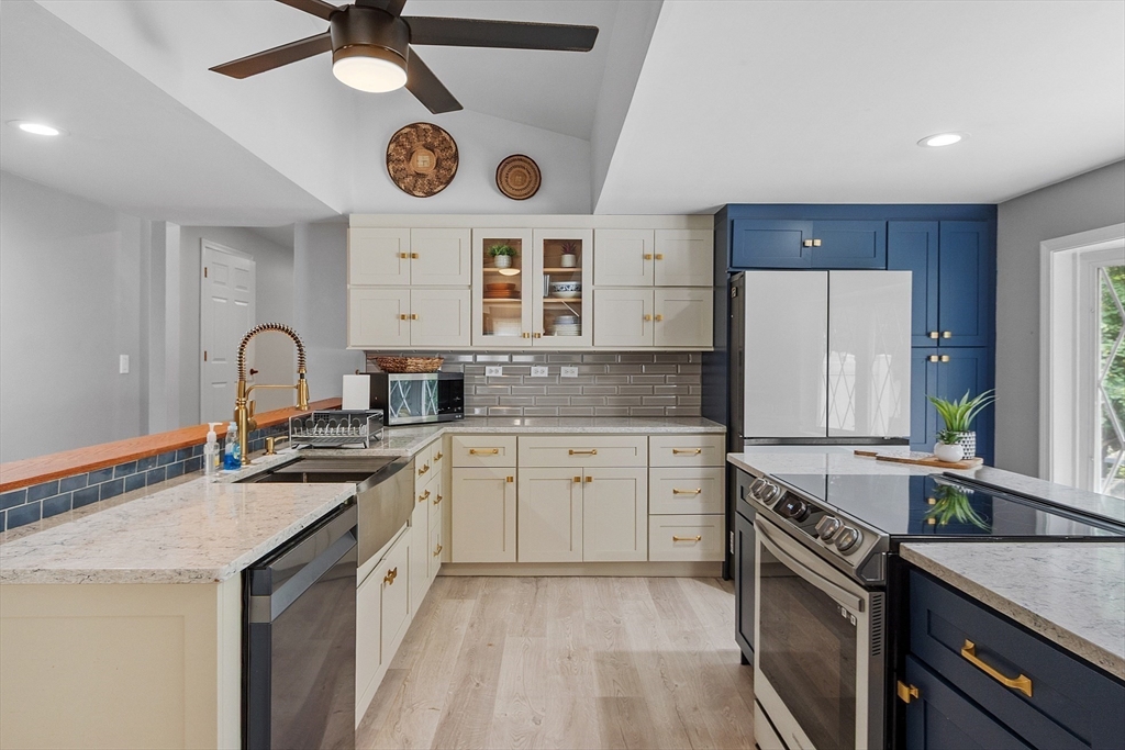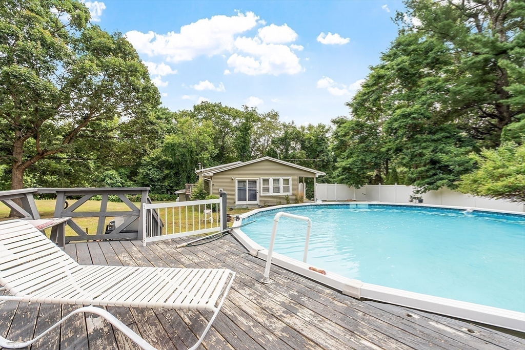 Welcome home to this unique raised ranch offering versatile living space and endless entertaining possibilities. ~ The main house features a light-filled living room with gleaming hardwood floors, a cozy pellet stove, and abundant windows that capture the sun’s warmth. ~ Brand new kitchen with new appliances, granite countertops, and a bar area framed by a large picture window ~ First-floor laundry for ultimate convenience ~ Four spacious bedrooms, and 2 full baths ~ including a master suite with vaulted ceilings, walk-in closet, and en-suite bath featuring a jetted tub ~ In-Law/Rental Unit Fully equipped legal two-family setup with separate entry ~ Two bedrooms, one bathroom, eat-in kitchen, and living room ~ Ideal for extended family, guests, or rental income ~ New roof ensures worry-free maintenance ~ Private backyard oasis with above-ground pool, patio, and built-in fire pit, One-of-a-kind well seating area adds charm and makes every gathering memorable ~ This home is a must-see