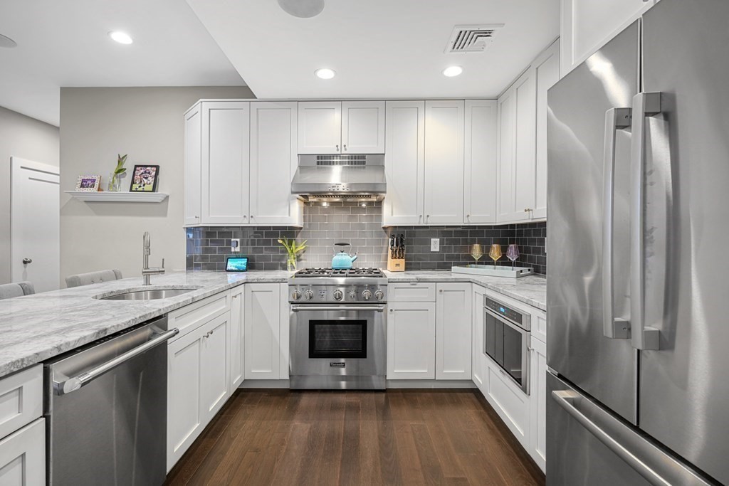Available 9/1! Welcome to this stunning corner 2 bed/2 bath unit in the heart of South Boston. The spacious living and dining area seamlessly connect to an openconcept kitchen featuring custom cabinetry, Thermador appliances, seating, and waterfall-edge marble counters. The well-proportioned guest bedroom boasts awalk-in closet, private balcony, and an adjacent full marble bath. The oversized primary suite, located at the opposite end of the home for added privacy, ishighlighted by a gas fireplace, a massive walk-in closet, and an en-suite bath with dual vanities, ample storage, and a walk-in shower. This boutique, professionallymanaged elevator building offers easy access to your garage parking space and a large private storage room. Enjoy breathtaking views from the professionallylandscaped common roof deck and the penthouse lounge with a kitchenette. Experience luxury living at an unmatched price point, with the neighborhood's bestrestaurants and shops!