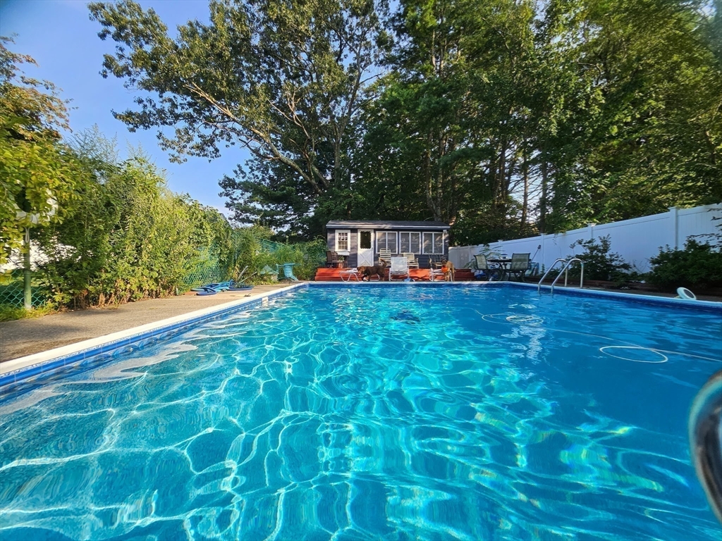 CHARMING Home Full of Character. Lovely expanded Cape, set at the end of a dead-end street, is ready for a buyer looking for something special. Gather by the fire in the living room where Beautiful hardwood floors and a stunning bowed window create an inviting atmosphere. Vintage kitchen blends old and new in perfect proportion with a showpiece hooded JennAir grill and cooktop, painted Quaker cabinetry and pressed copper backsplash. Dine at the counter or enjoy leisurely meals in the dining room featuring a Harmon Pellet stove and built-in cabinetry. Cozy up with a good book in the family room or use this space as a guest bedroom. Head out to the back yard where a sparkling in-ground pool and pool house make for the ultimate relaxing retreat! Upstairs discover two large bedrooms and a library ideal for studying, working from home or potential conversion to third bedroom. Fully fenced in yard, Amazing location great for commuting and convenient to everything. Your Dream Home Awaits!