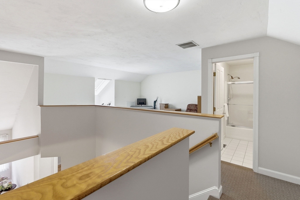 Welcome to 10 Westminster Drive, in the desirable over-55+ community of The Villages at Marlborough East! Ideally situated at the end of the complex, this condo offers both privacy and convenient access to shopping, dining, and major highways. Step inside to a charming front porch entry that leads to the mudroom and a bright eat-in kitchen featuring a walkout bay window. The kitchen is thoughtfully designed with granite counters, a corner sink, and recessed lighting. The open concept dining and living area is perfect for entertaining, complete with a cozy gas fireplace and direct access to the deck. The 1st floor primary bedroom includes a walk-in closet, a dedicated makeup area, and a full bath. Upstairs, you will find the 2nd bedroom with a versatile loft space perfect for an office, crafts room, or a guest retreat. Additional highlights include hardwood flooring, central air, cathedral ceilings, attic eve storage, and low-maintenance living in a well-kept community.