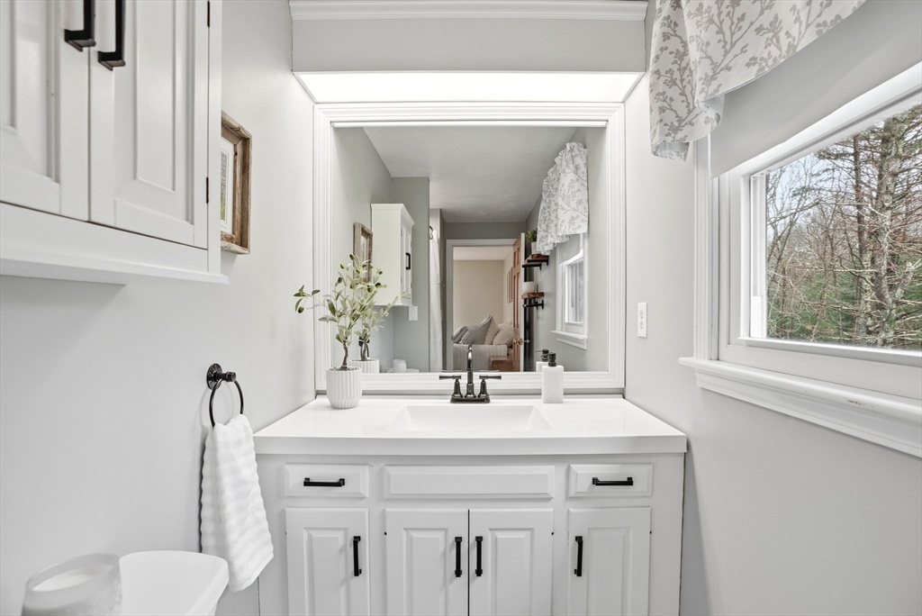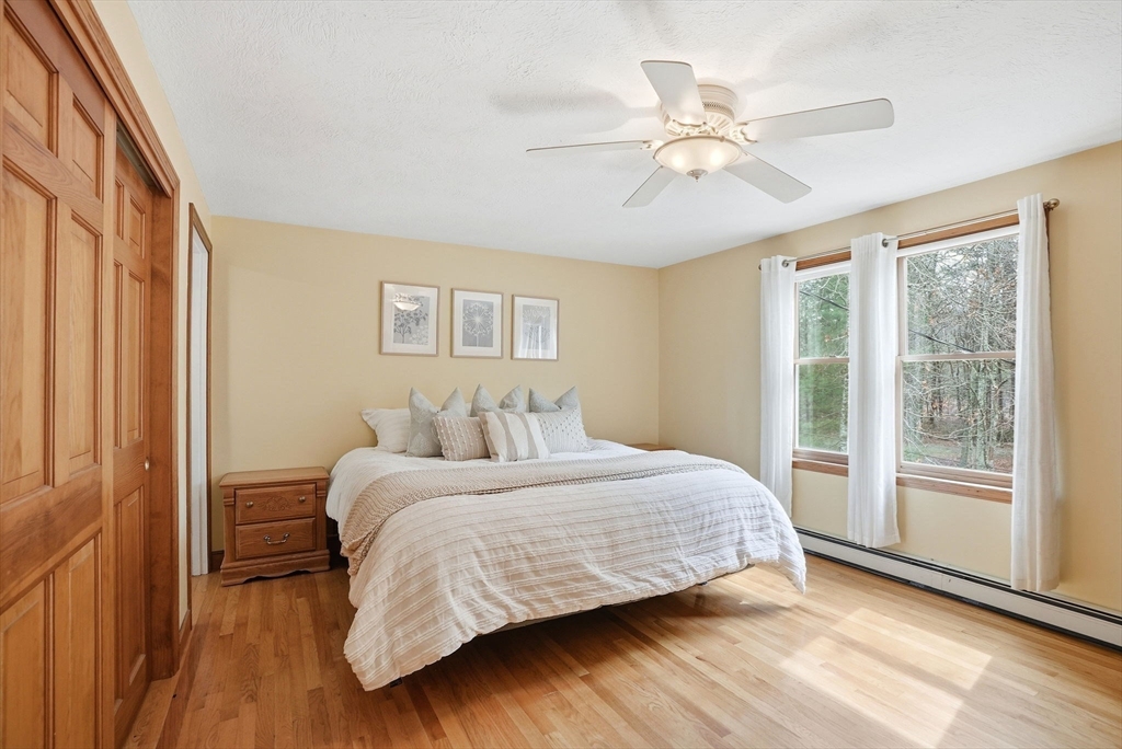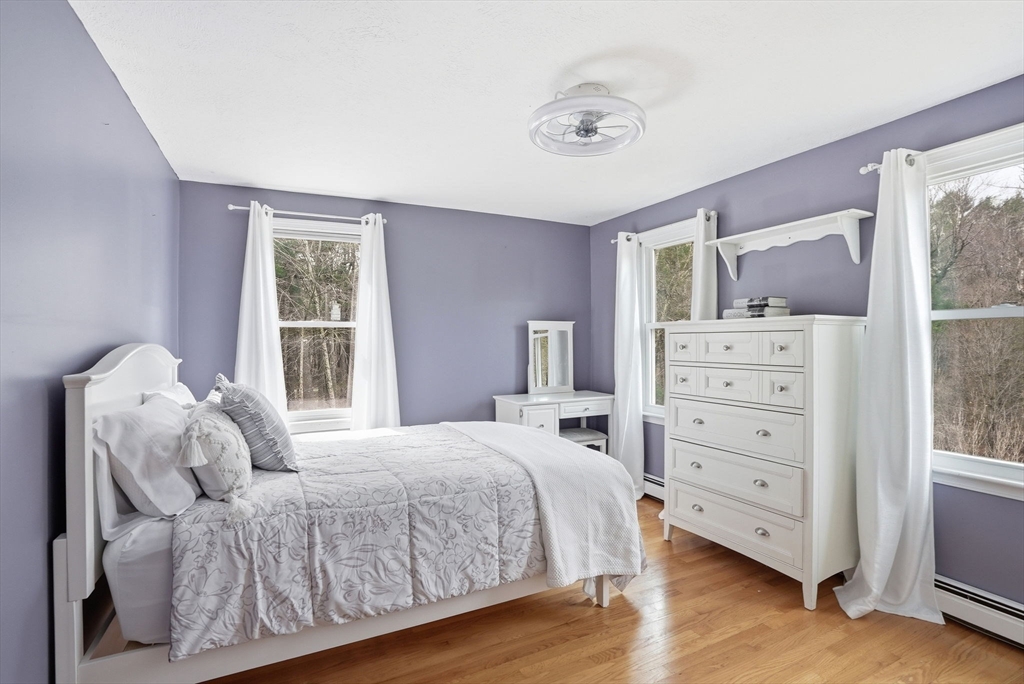 This stunning Colonial, surrounded by over two acres of land, has so much to offer! Inside features an ideal layout with generous living space & gorgeous hardwood floors throughout! Sunlight pours through the first level, featuring two living rooms, kitchen, dining, half bath, and the gorgeous heated sunroom overlooking the expansive level backyard. The family room shines with its soaring ceiling, skylights, recessed lights, ceiling fan & cozy wood stove. Upstairs features all 4 spacious bedrooms, the primary w/ its beautifully updated en suite bath, a 2nd full bath, and ample storage space in the 895 SF unfinished walk-up attic, which could be finished to add even more living space! The 318 SF lower level offers a versatile finished bonus room with heat & AC that walks out to the oversized 2-car garage. The good-size firepit welcomes cozy gatherings among the spacious & level backyard, perfect for entertaining. A great opportunity to own this beautiful spacious home on 2.33 acres!