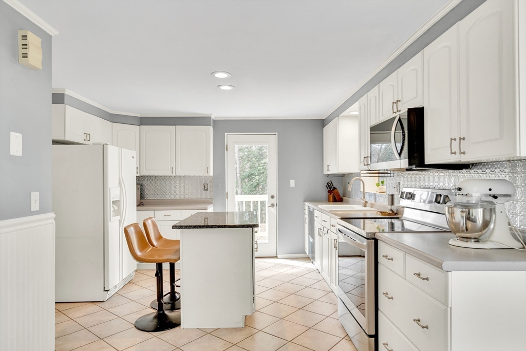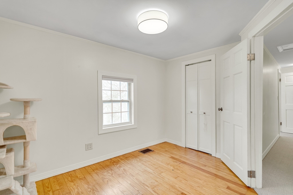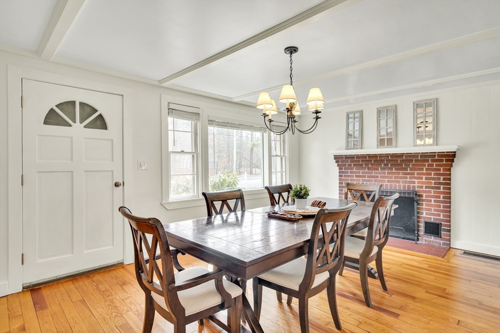 Beautiful Country Cape in the charming town of Bolton, offering stunning panoramic views of the Bolton Flats Conservation Area and breathtaking sunsets. This well-maintained, move-in ready home features a spacious family room with cathedral ceilings, skylights, and a cozy stove. Hardwood floors run throughout, and the interior has been recently updated with a neutral color palette. The dining room with fireplace flows into a bright kitchen with center island, eat-in area, and bay windows. The first floor also includes a flexible office or playroom and a full bath. Upstairs offers a primary bedroom, two additional bedrooms, and a full bath. Enjoy outdoor living with a deck and screened porch. The lower level includes bonus space, a workshop, laundry, and an attached two-car garage. A wonderful blend of comfort, space, and scenic beauty.