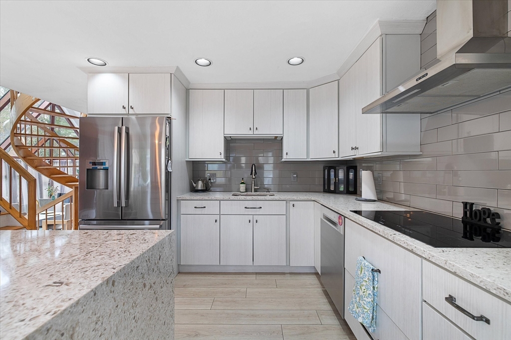 Absolutely stunning 3-bedroom, 3.5-bathroom condo in desirable Hudson is ready to wow its new owners! Nestled in a private community, it boasts quiet luxury while maintaining tranquility and convenience. An open concept layout on the main floor makes entertaining easy, while the many skylights and spiral staircases steal the show. There’s no shortage of show-stopping features: the master bathroom private balcony, the newly renovated kitchen, or the finished basement are all created with taste and design in mind. Enjoy your meals steps from the kitchen to your serene, privately fenced in deck. From top to bottom, this was built with intention, comfort, and charm. Don’t miss this one!