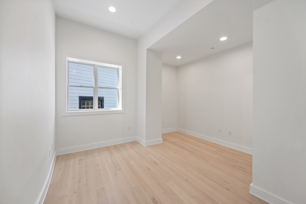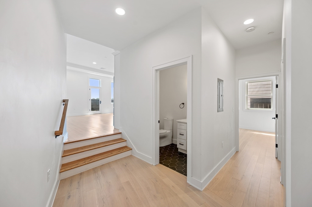 THE DYER LOFTS, Medford Square's premier Luxury condo development. This third floor unit boasts white shaker cabinets, stainless steel Bertazzoni appliances, in unit laundry, incredible views from a large exclusive parapet deck, an abundance of natural light and includes two deeded parking spaces. Elevator building with additional unit storage in the basement as well as private and secure bike storage on the first floor. Located in the heart of downtown and close to many amenities, including The Chevelier Theatre, a thriving restaurant scene, local cafes, the green line extension, the commuter rail and bus routes.