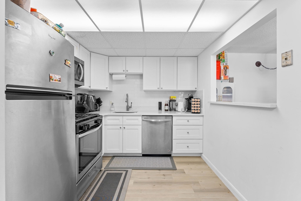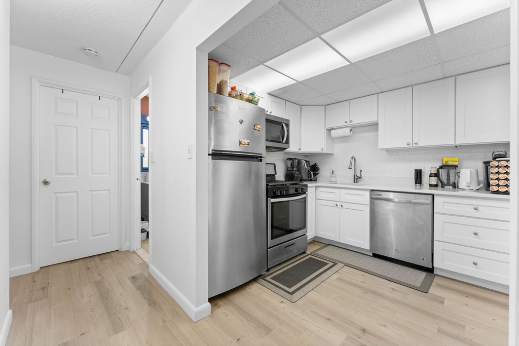 OVER 1,000 sq ft condo priced to sell with a perfect layout! Enjoy a convenient location close to highways, restaurants, and shopping, plus a wide range of included amenities. This renovated home features two generously sized bedrooms, one full bath, and a half bath. You’ll love the open-concept design, with a bright living room area, spacious layout given the size and a modern white kitchen with quartz countertops and newer vinyl wood flooring. Freshly painted throughout, the unit also offers a walk-in closet and ceiling fans for added comfort. The condo fee covers more than most: heat, hot water, electricity, pool access, parking, exterior maintenance, snow removal, road maintenance, sewer, gas, trash, landscaping, water, and master insurance. Pet-friendly, too! Come see it for yourself, fall in love, and make and make it yours.