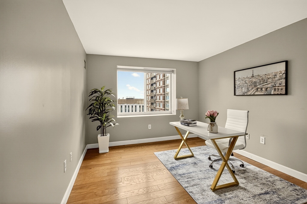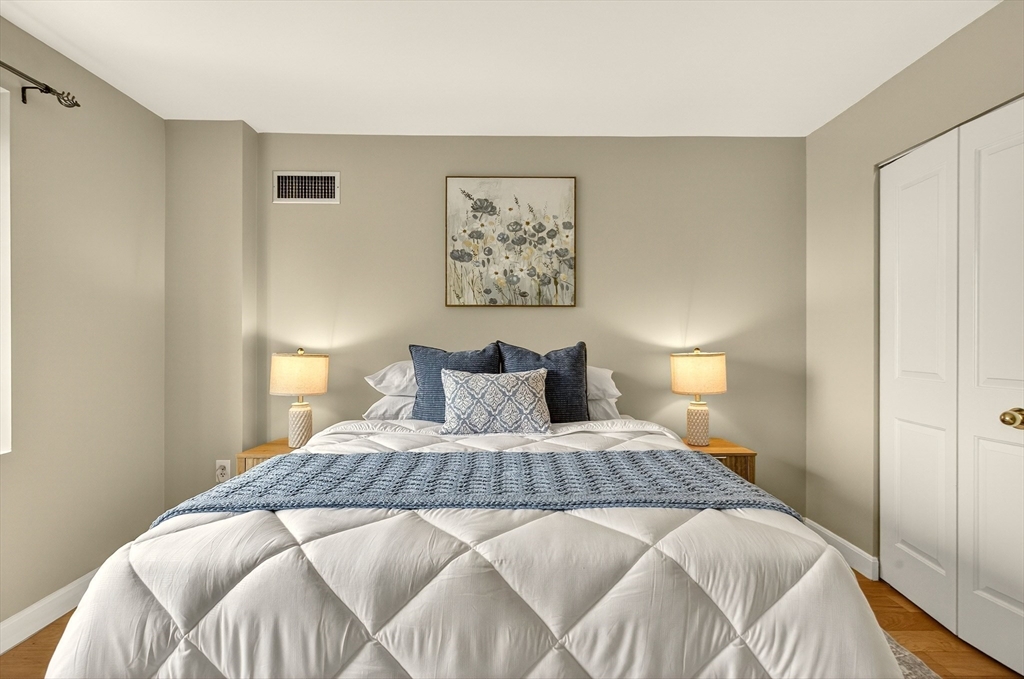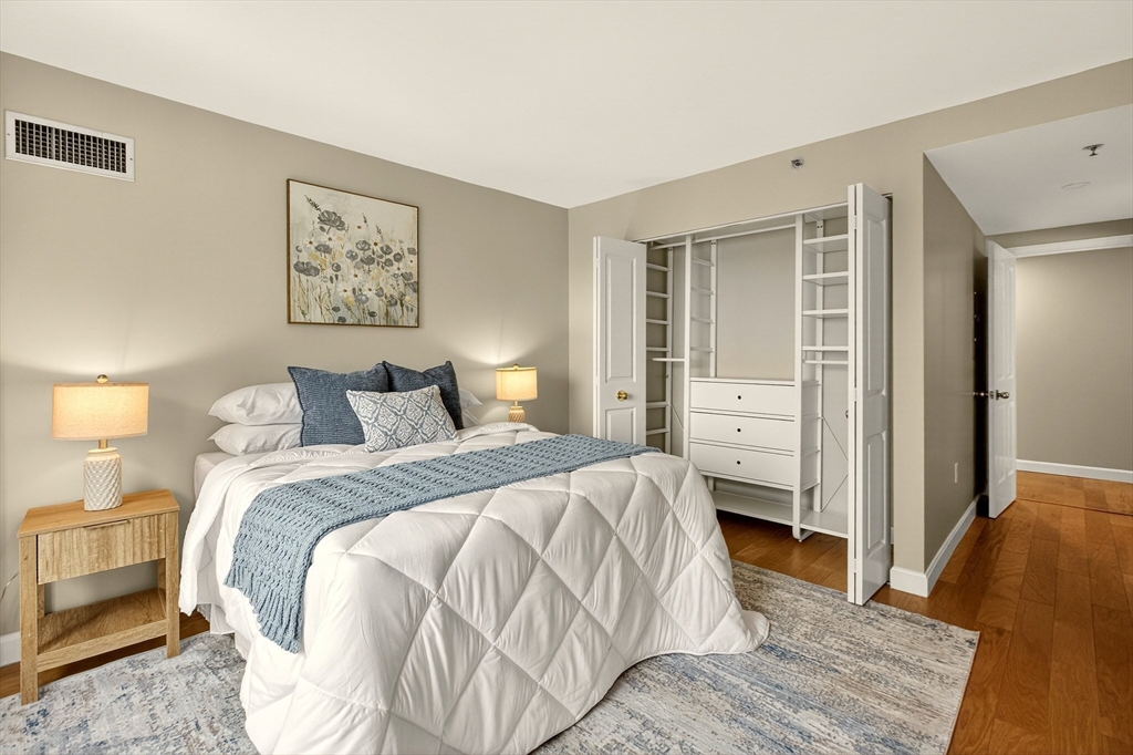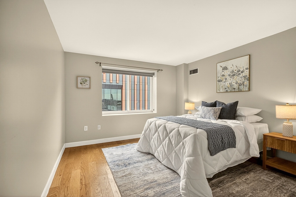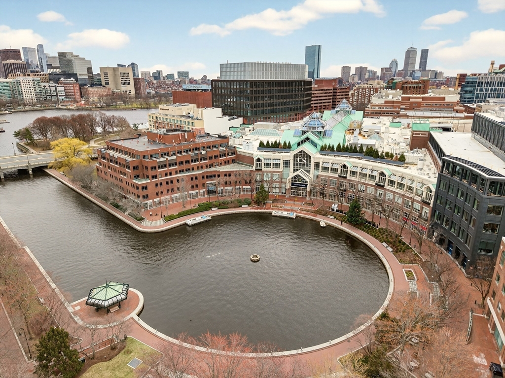 Experience elevated urban living from the 19th floor of the prestigious Regatta Riverview. This sophisticated corner unit features sweeping views of the Charlestown skyline and Bunker Hill Monument, offering a stunning backdrop to enjoy dinner with a skyline view. Meticulously maintained, the interior boasts seamless wide-plank flooring and a modern kitchen with a premium double-door refrigerator. Recent upgrades include newly renovated bathroom vanities and custom-built closets in both bedrooms. In-unit laundry adds total convenience. Residents enjoy 24/7 concierge, valet parking with one deeded space, a fitness center, heated indoor lap pool, movie theater, and social suite. Perfectly set in Cambridge Crossing, you are steps from the Museum of Science, North Point Park, and the T. This pet-friendly building offers a complimentary shuttle to Kendall Sq and North Station, providing a seamless connection to the best of Cambridge and Boston.