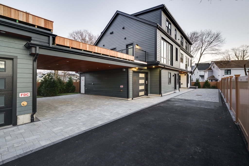 LAST UNIT LEFT! Elegant new construction 4 bed, 3.5 bath townhome with 2-car garage parking and private yard. Thoughtfully designed with high-end finishes throughout, this home blends modern style with everyday function. The open-concept main level features a chef’s kitchen with integrated appliances, custom cabinetry and built-ins, a sleek linear fireplace, and striking arch details, along with a stylish wallpapered half bath and custom built-in mudroom. Upstairs, find 4 spacious en-suite bedrooms including a luxurious primary suite with walk-in closet and spa-inspired bath, plus laundry. The finished lower level offers versatile space ideal for a gym, media room, or playroom. Built to live like a single-family, this property provides comfort and convenience in a prime location near parks, the Charles River trail, neighborhood shops and restaurants, and with easy access to Watertown and Cambridge.