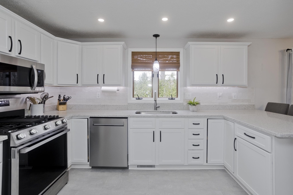 Welcome home to this beautiful colonial in sought-after Countryside Estates, set on a corner lot across from Chicopee Country Club, around the corner from Litwin School and Williams Park. Offering over 2,000 sq. ft. of living space with expansion potential in the full basement, this home features a side-entry 2-car garage, spacious living room with fireplace, formal dining room, and a large eat-in kitchen, recently updated with slider to the deck. The cathedral-ceiling family room (an extra space if looking for a 4th bedroom) adds extra entertaining space, while the oversized half bath with laundry hookup finishes off the first floor. Upstairs, enjoy a private primary suite with full bath and 2 closets, plus 2 large bedrooms and another full bath. Updates (APO) include: new HVAC system (2023), septic (2023), kitchen (2023), bathrooms (2023 & 2026).
