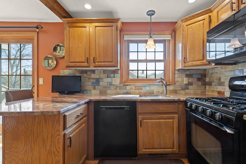 WOW! Move right into this updated, well maintained, townhouse. Features newer windows, slider, storm door. Hardwood 1st floor. Nest Thermostat. Granite counters in Kitchen, newer appliances & washer/dryer included. Recessed lights throughout. Bow window in fireplaced living room overlooking wooded area. Primary Bedroom with cathedral ceilings, skylight, loft and attic access, 2 closets. Full bath updated cabinet and granite counter, tile floor. 2nd bedroom with 2 Double closets, shelved double window. Mud room on lower level has additional storage. Water tank 2019, A/C and furnace 2013/14. Complex includes in ground seasonal pool, tennis & paddle ball courts, basketball area, walking trials, fountained pond, clubhouse and overflow parking. Close to NH shopping, Lowell Colleges & bike trails. Dogs must be approved prior to P & S, breed restrictions. Only 1 dog per unit. No vehicles with writing on them or commercial vehicles. This one won't last!