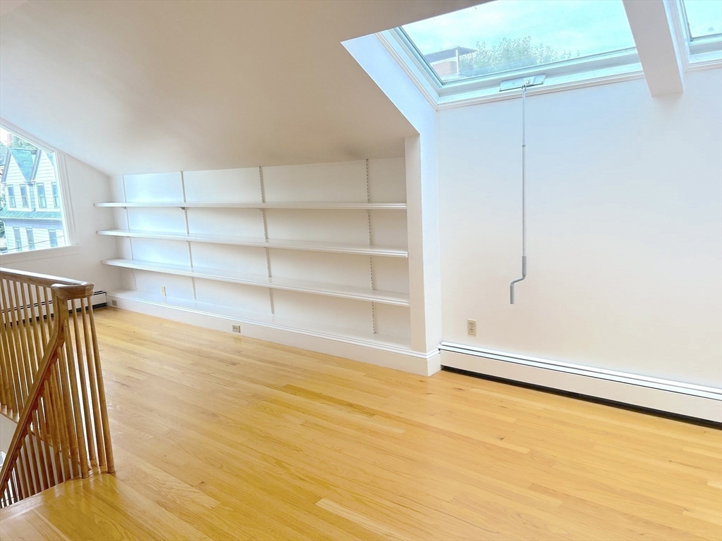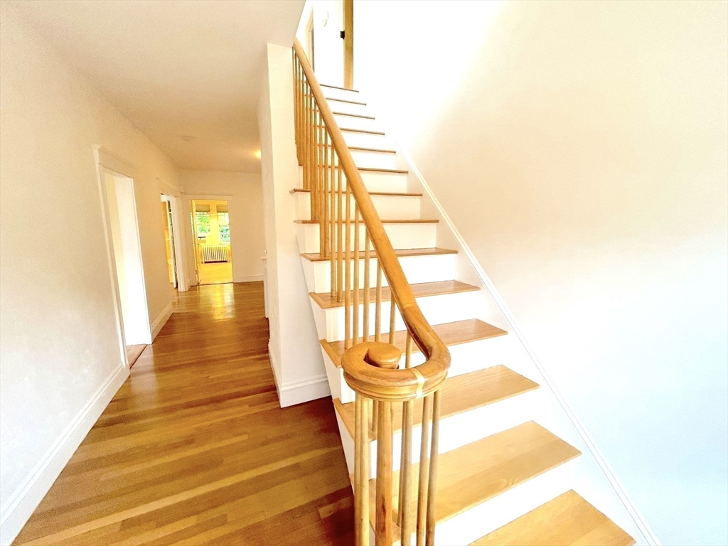 This is the Brookline home you’ve been waiting for: sunlit, spacious, and perfectly located! Nestled on the quiet, dead-end side of Stearns Rd, a charming 4-bed 2-bath home, with over 2,000 SF thoughtfully designed across two levels offers ample space for rest & relaxation. Enter into a center hallway with period details & wood floors. The main level includes a bright living room with wood-burning fireplace, formal dining room, expansive eat-in kitchen with a cozy nook perfect for a breakfast area, two generous bedrooms, full bath, and both front and rear porches. Upstairs, enjoy a serene treetop retreat with two more large bedrooms, a second full bath, and bonus sitting area ideal for a home office or reading space. Laundry is located onsite and one covered parking space is included. Just 0.5 miles to Longwood Medical, 0.3 miles to Coolidge Corner, and moments from the Green Line (D & C -Train), parks, shops, and dining. Avail June 1 (Aug 1 2026 rent will adjust to $5800/month).