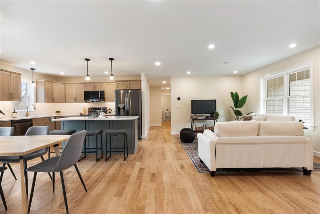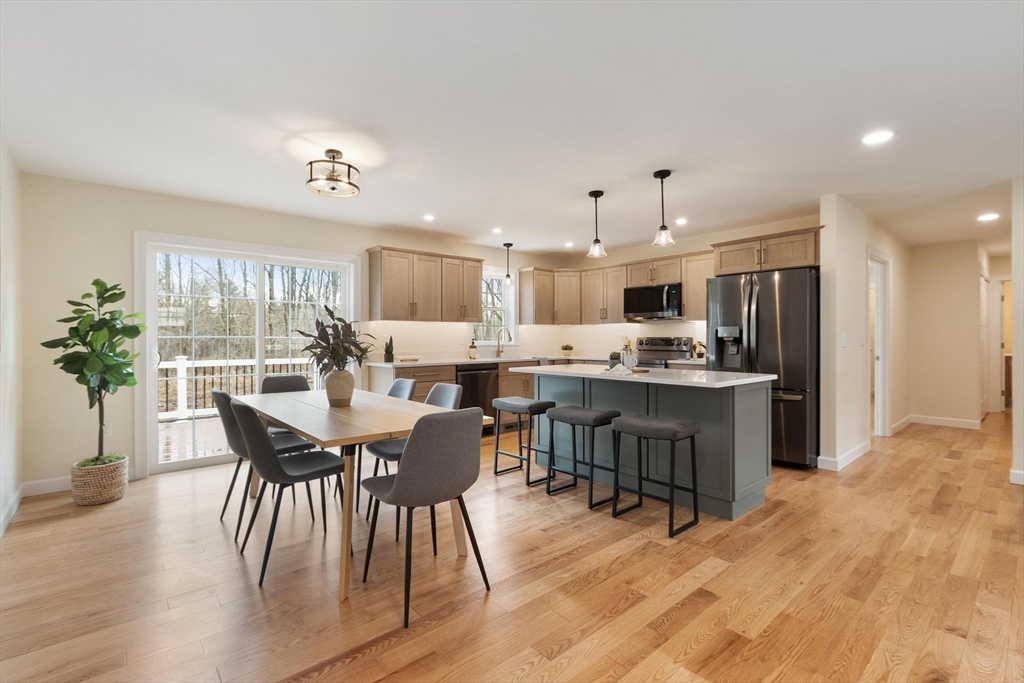 New quality built construction Ranch with a wonderful floor plan. Enjoy single level living! Open concept kitchen with island, dining, living room. Primary suite on one end and the other two bedrooms and full bath on the other end (split bedrooms). Dedicated laundry room and pantry! All hardwood and tile flooring. The two-car garage is perfect size. Front porch (composite) provides a welcoming entrance to your home. The composite deck extends your living space outdoors with a flat lot perfect for relaxation and entertaining. Offering approximately 1547 square feet of living area this property is a modern haven designed for comfortable living. Excellent highway access and nearly complete!