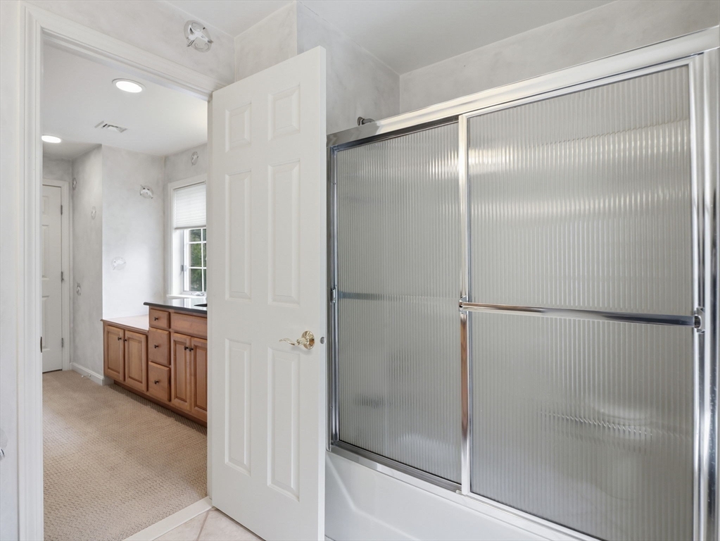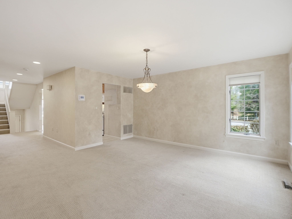 "SALISBURY GREEN"...Spacious 3 BEDROOM, 3.5 BATH END UNIT!...FIRST FLOOR BEDROOM AND FULL BATH!..Updated, Fully-Applianced Kitchen has Maple Cabinets, Granite Counters, and a Breakfast Nook..The Open Floor plan has a Formal Dining Area open to the large Living Room with Floor to Ceiling Glass and an Atrium Door to the Deck.(Awning)...The First Floor Bedroom/Office has a Walk-In Closet and an adjacent Full Bath..The Second Level has a large Open area/Loft...Double Entry Doors to the Main Bedroom Suite with a Full Bath, Walk-In Closet and an additional Closet... Guest Bedroom is good-sized...THE FINISHED WALKOUT LOWER LEVEL HAS A HEATED CERAMIC TILE FLOOR with a Slider to the Patio, Built-Ins, and a Laundry Room with a sink and Half Bath...2 Car Garage ..GAS HEAT!...Central Air-Conditioning! ..Central Vac!..Security System!..Large Clubhouse with Wraparound Deck and beautiful In Ground Pool!....2018 Exterior Renovation, including Vinyl Siding and Roofs!