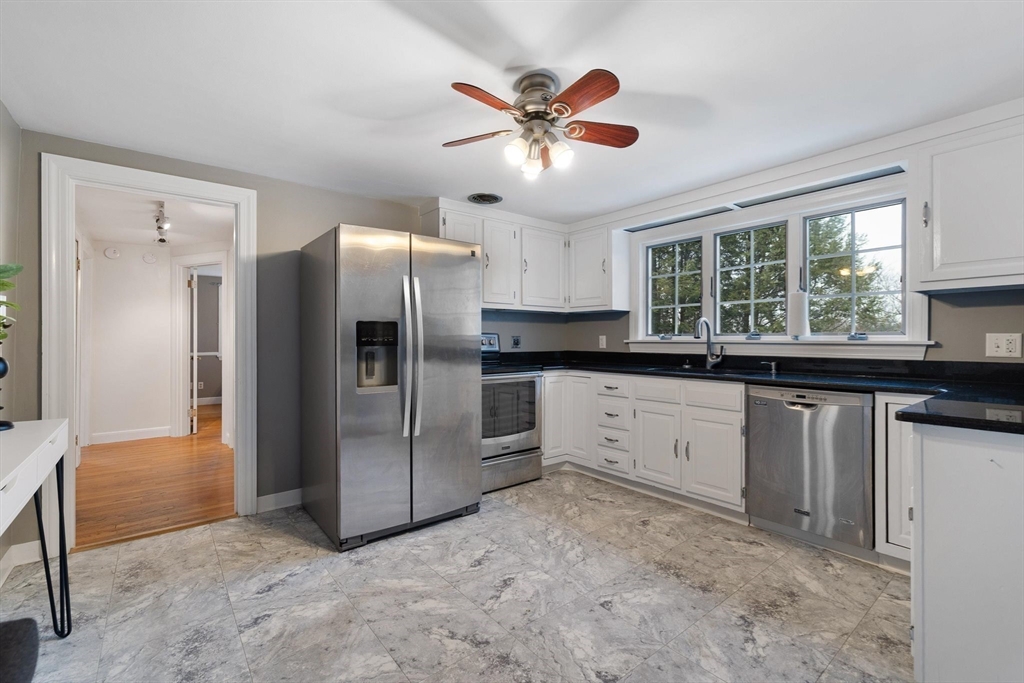 Impeccably maintained, this classic Cape-style home combines custom features with modern, quality upgrades. Features include a spacious BONUS area between the kitchen and garage, perfect for an extra living room, mudroom, or dining space and is complemented by a cozy pellet stove – great for use all year round. The well-sized kitchen includes stainless steel appliances and offers a lovely backyard view, while all four bedrooms showcase beautiful hardwood floors. The partially finished lower level adds even more living space and includes an add'l full bathroom! As warmer weather approaches, entertain or simply relax next to your own custom-built, heated inground pool surrounded by stunning landscaping. The property is equipped with a brand NEW mini-split system, newer Buderus heating system, Harvey vinyl windows, and PAID solar panels. Fantastic location conveniently located near major routes, amenities and close to all that Marlborough has to offer, this home truly has everything!