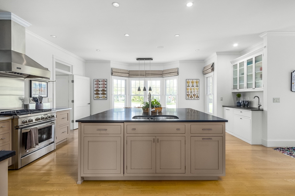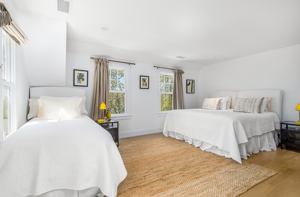 This 5-bedroom, 5.5-bath, 5,620-square-foot home on 40,000 + square foot lot sits along Chatham's popular walking loop, just steps from Stage Harbor, public town landing and the Yacht Club. Ideal for entertaining or relaxing, it features a large deck, swimming pool and hot tub. Inside, hardwood floors and tall ceilings create a bright, open feel. The kitchen offers granite countertops, generous storage, and space for an 8-seat table by a picture window. The layout includes a family room with fireplace, living room with fireplace, and dining room. There is a finished basement with full bath adding flexibility and function. Upstairs are two ensuite bedrooms, plus three more bedrooms, two additional full baths and dedicated laundry room. You'll also find an office nook and access to a rooftop deck/widow's walk with water views. An attached two-car garage and deeded access to a quiet stretch of Stage Harbor Beach complete the home. Properties like this seldom come on the market.