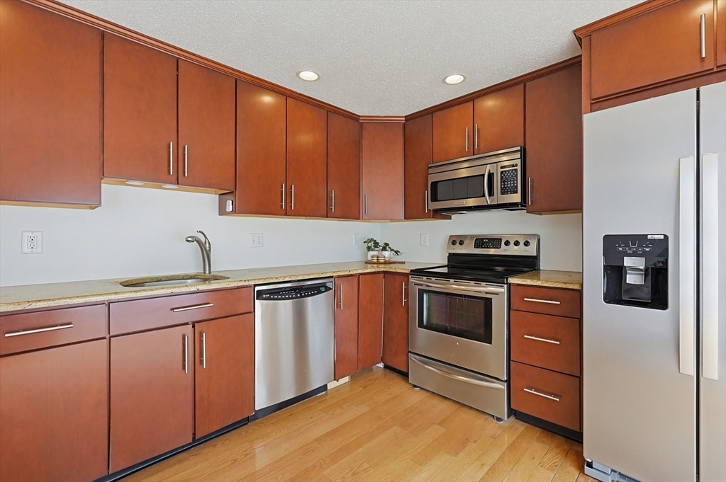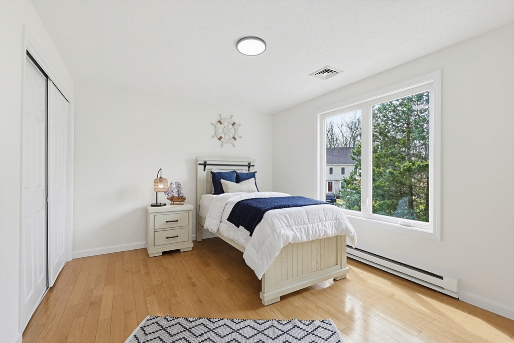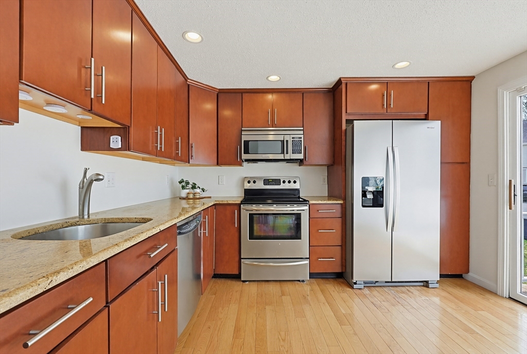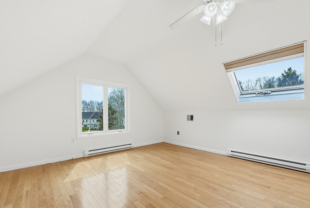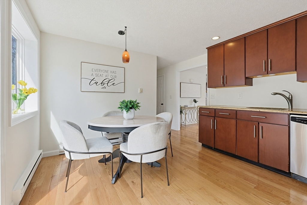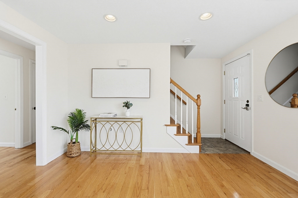 Welcome to The Ledges, a highly sought-after community surrounded by acres of serene land and mature trees. This beautiful 2–3 bedroom end-unit condo offers privacy and space with hardwood floors throughout. The updated kitchen features modern finishes and a slider leading to a trex deck. The main level also includes a convenient half bath and a generously sized living room filled with natural light. Upstairs, you’ll find two spacious bedrooms and a full bath with beautiful tile work. The third-floor loft provides a versatile bonus space with hardwood flooring, closet, window, and skylight, ideal for a home office, guest room or playroom. Additional features include an unfinished basement with laundry, central air, and efficient electric heat with individual room zones, serviced by the amazing North Attleboro Electric. OPEN HOUSE FRIDAY 4/3 12-1 AND SATURDAY 4/4 12-1:30.