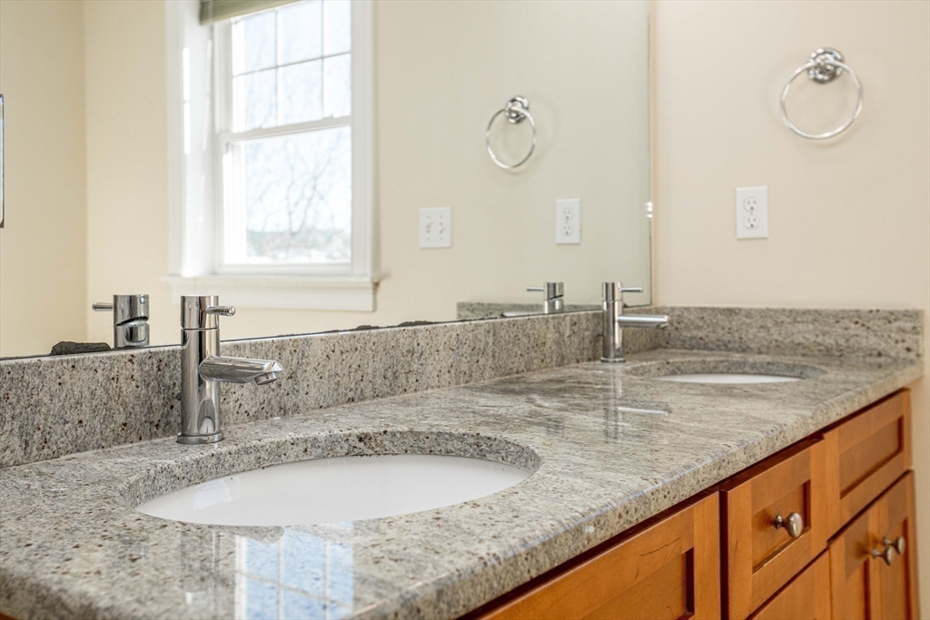 Beautiful luxury-style townhome on private cul-de-sac conveniently located in Arlington, close to public transportation, restaurants & direct access to the Minuteman Bike Path. Featuring a spacious open concept living room with a fireplace, dining room, and modern kitchen with granite countertops and stainless steel appliances. This 3-bed, 2.5-bath, 2,600 sq ft home boasts gleaming hardwood floors, in-unit laundry, a deck, a private fenced-in yard with a vegetable patch, and a finished 3rd-floor space that can be used as an office or playroom. Giant master bedroom with dual walk-in closets and dual vanity in master bath. Central A/C. Plenty of storage with a walk-out 600 sq ft unfinished basement that was used as an exercise room. Massive attached 2-car garage. Right near the ice-skating rink, playground, baseball field, basketball court, and dirt bike park. Minutes to elementary, middle, and high schools. Bus access to Alewife and Cambridge. A beautifully maintained must-see gem!