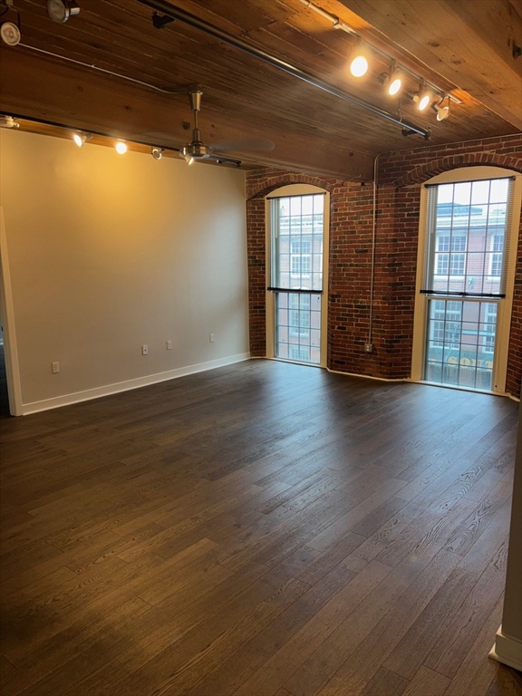 Great Loft that has just been freshly painted and professionally cleaned ready for you to move in today and start enjoying summer concerts right out side your door, and walk downtown to folk fest and semi pro Baseball games.This light and bright loft style condo features soaring wood ceilings gleaming planked flooring, brick walls, large floor to ceiling windows, tiled flooring in kitchen and baths large walk in closet, a good sized pantry and a large in unit storage closet. Bonus room could be used as guest bedroom or home office.This place is vacant and easy to show, and you can move in quickly. This home has old Mill style character with modern comfort. There is a parking garage a short walk away and parking spots are available for rent by the month. Call today and set up a viewing.