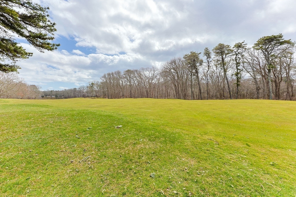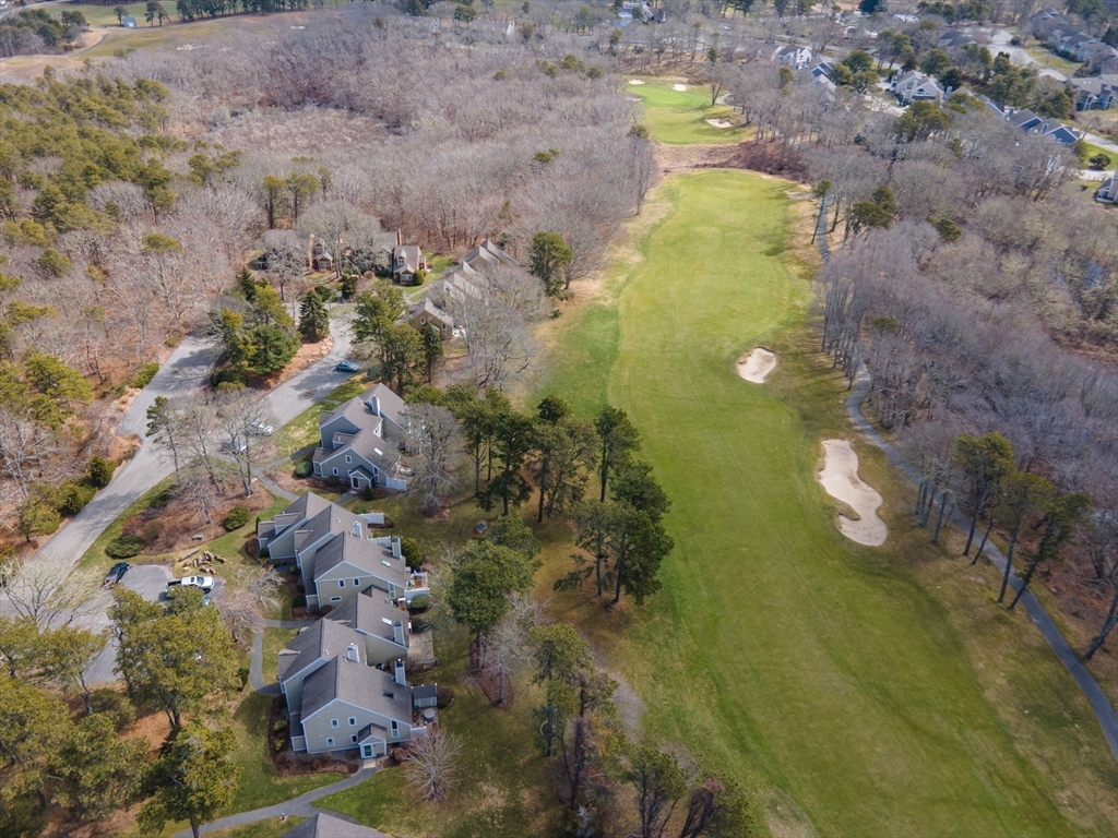 Tucked away near the end of Billington Lane, this thoughtfully situated Ocean Edge condo offers serene views overlooking the 9th fairway. Once in bloom, hydrangeas and pink roses lead you to the door, and once inside, frame your views. Enter onto stunning Brazilian hardwood flooring that flows throughout the living area and into the open kitchen, featuring updated cabinetry, granite counters, and stainless steel appliances. This inviting ''B'' style townhouse offers 2 spacious bedrooms and 2 full bathrooms, providing comfort and flexible everyday living. The cathedral ceiling creates a feeling of space, flooded with natural light from the skylight and warmed by the wood fireplace during cooler months. Enjoy indoor-outdoor living with an impressive 10-foot slider that opens to your private patio, perfect for relaxing, entertaining, or simply taking in the tranquil golf course views—an opportunity to own a private retreat combining comfort, charm, and picturesque surroundings.