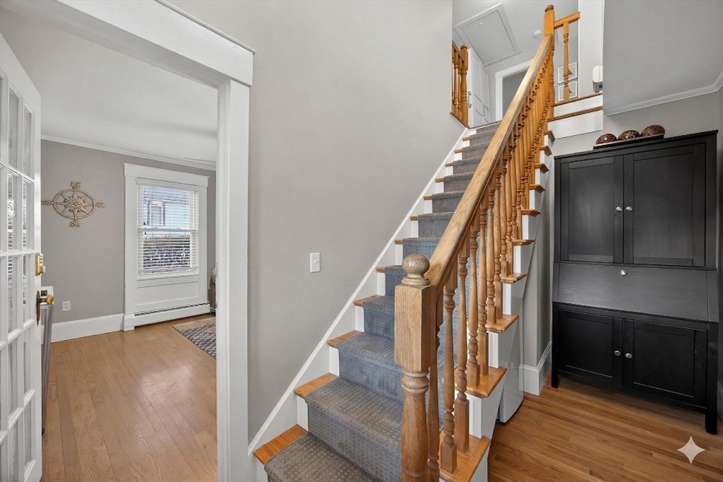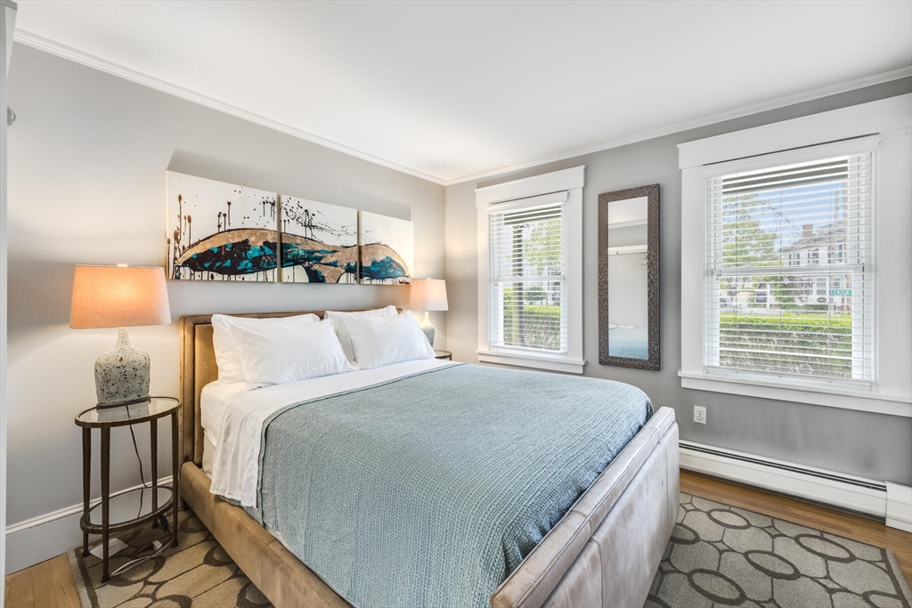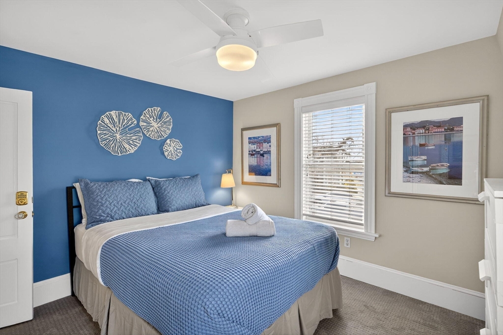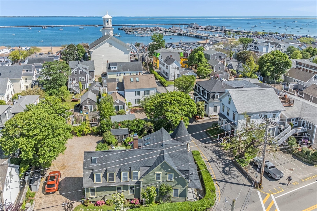 Dating to the early 1800s, this distinctive Provincetown residence spans 2,457 square feet and sits on an expansive, oversized corner lot. A turreted corner, gambrel roofline, and rich historic detailing create a striking architectural presence just one block from Commercial Street. Inside, the spacious layout offers a fireplaced kitchen, formal and informal gathering areas, a substantial en suite bedroom on the first floor, and two primary en suites upstairs. Two bathrooms have been recently updated, adding modern comfort. A three-season room opens to the outdoors. Thoughtfully landscaped gardens, a large entertaining deck, and parking for six or more vehicles add to the appeal. Whether a primary residence or a seasonal retreat, this lovingly updated historic home offers everyday comfort in one of Provincetown's most desirable neighborhoods. Buyer to assume sewer betterment.