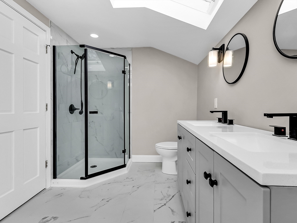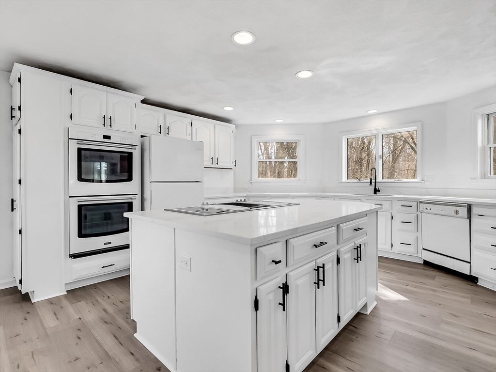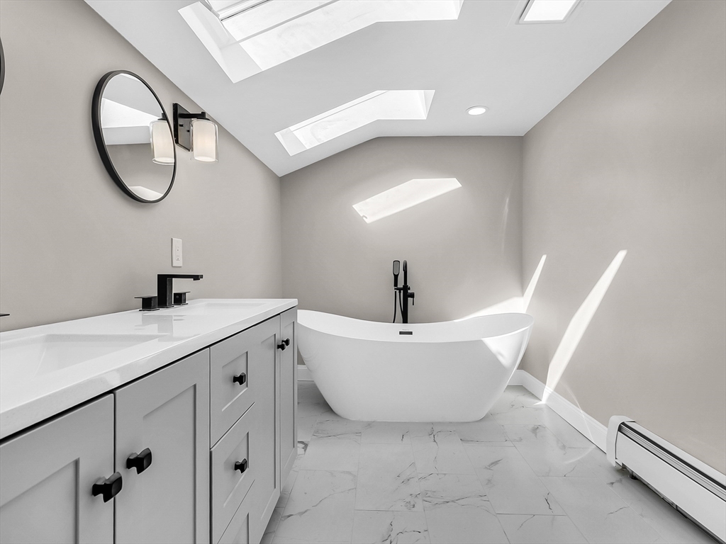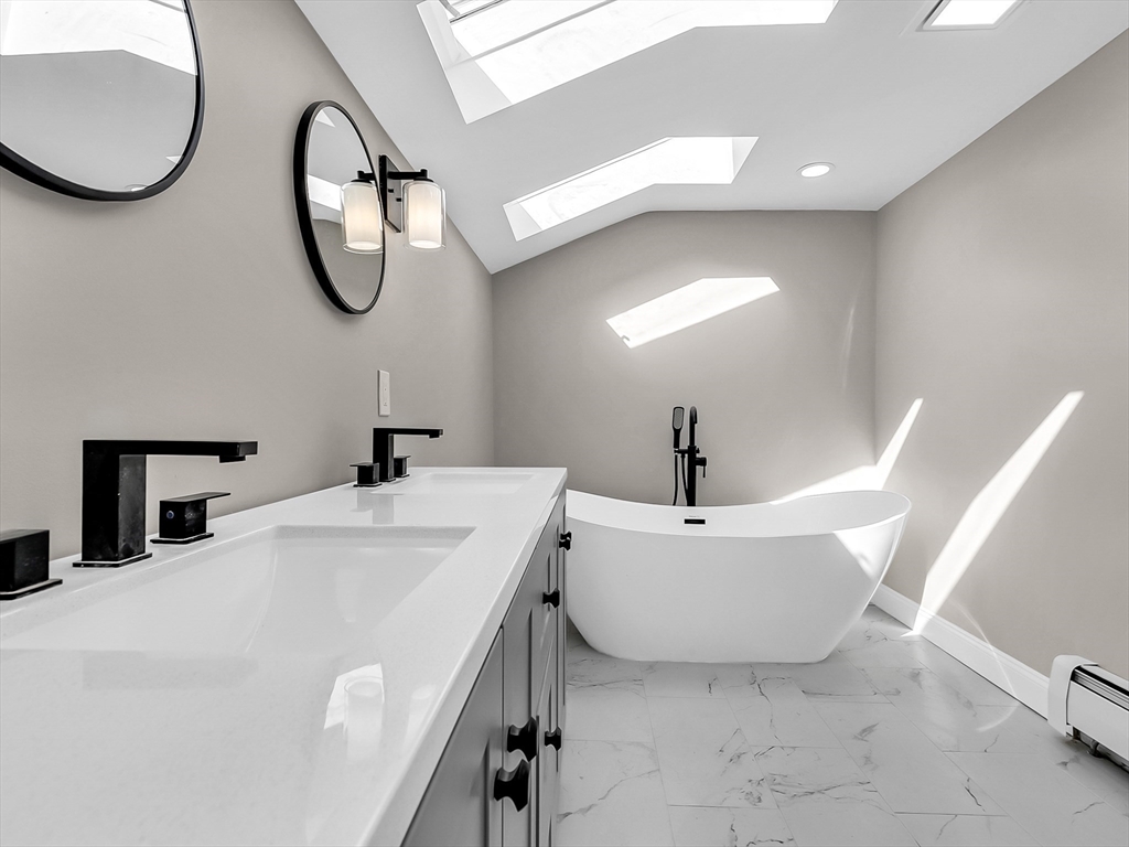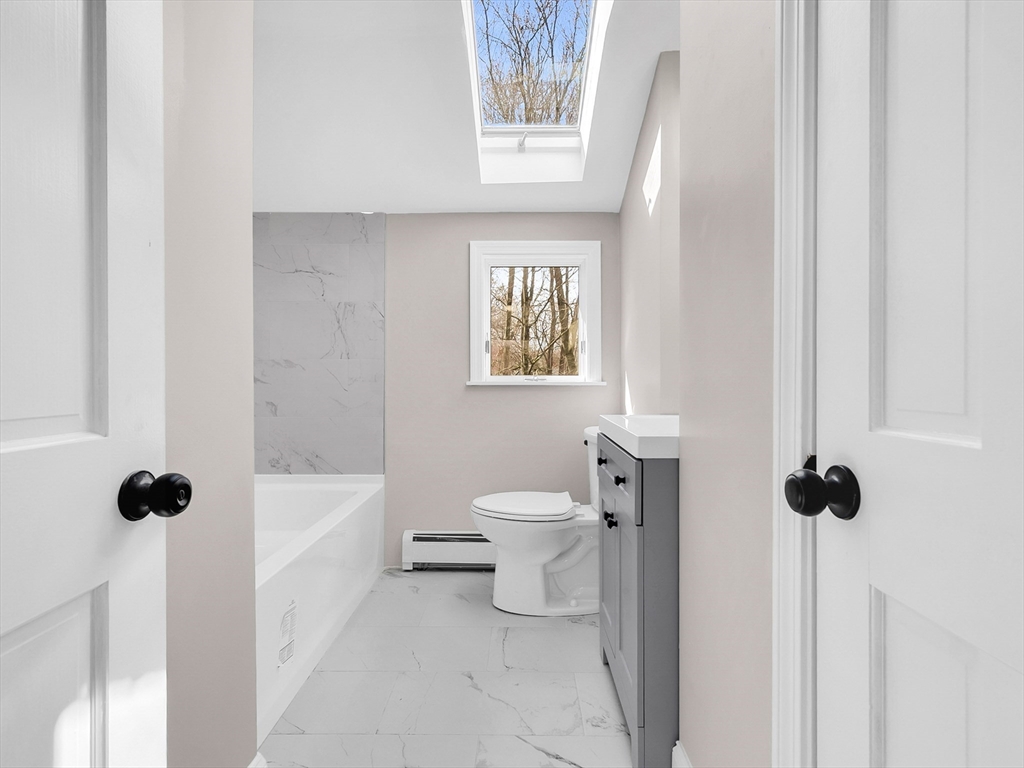 Tucked away on a quiet cul-de-sac, this beautifully remodeled home at 3 Balfour Court in Bradford offers over 2,600 sq ft of living space on the main levels. Featuring 3 spacious bedrooms and 3 brand-new bathrooms, this home blends comfort and style throughout. The updated kitchen opens to a stunning great room with cathedral ceilings and a fireplace—perfect for everyday living and entertaining. Enjoy an oversized deck just off the kitchen. The primary suite includes a luxurious bath with double vanity, soaking tub, and tiled shower. The finished lower level adds approx. 1,090 sq ft of additional living area with two walk-out entrances and half bath—ideal for in-law potential, ADU, or flexible bonus space.