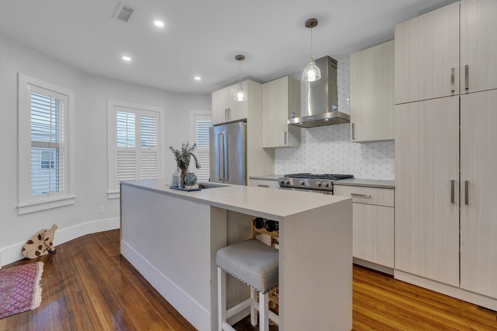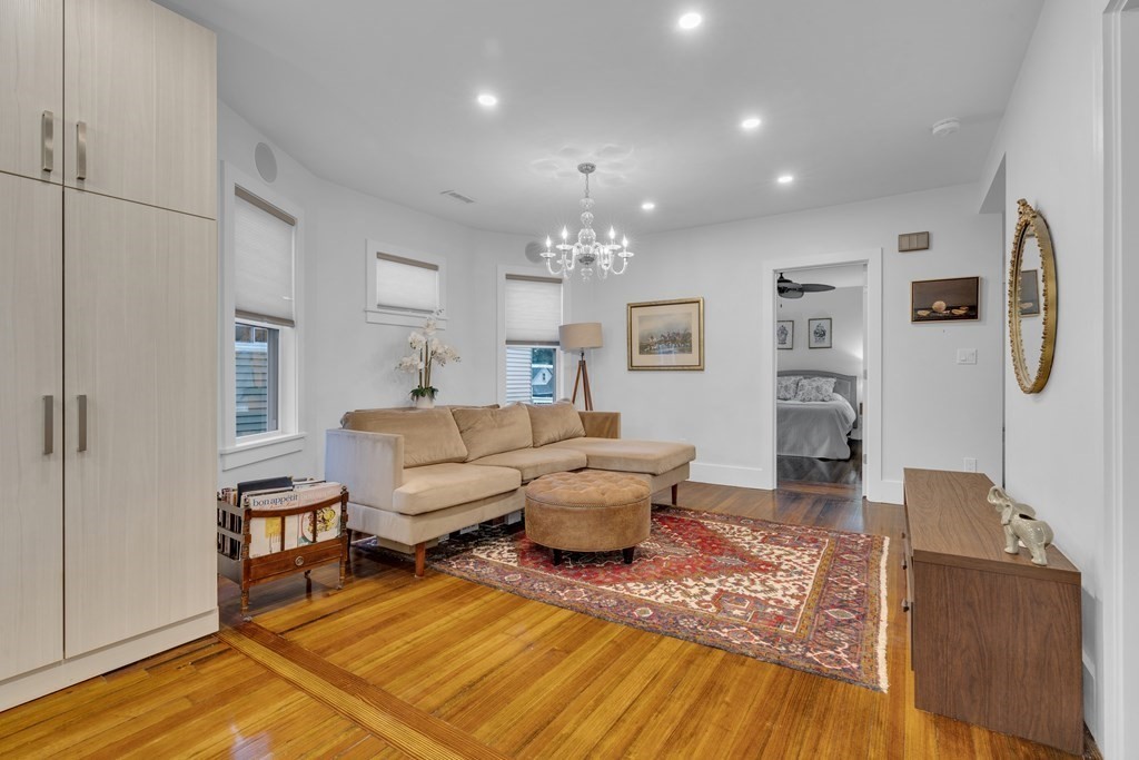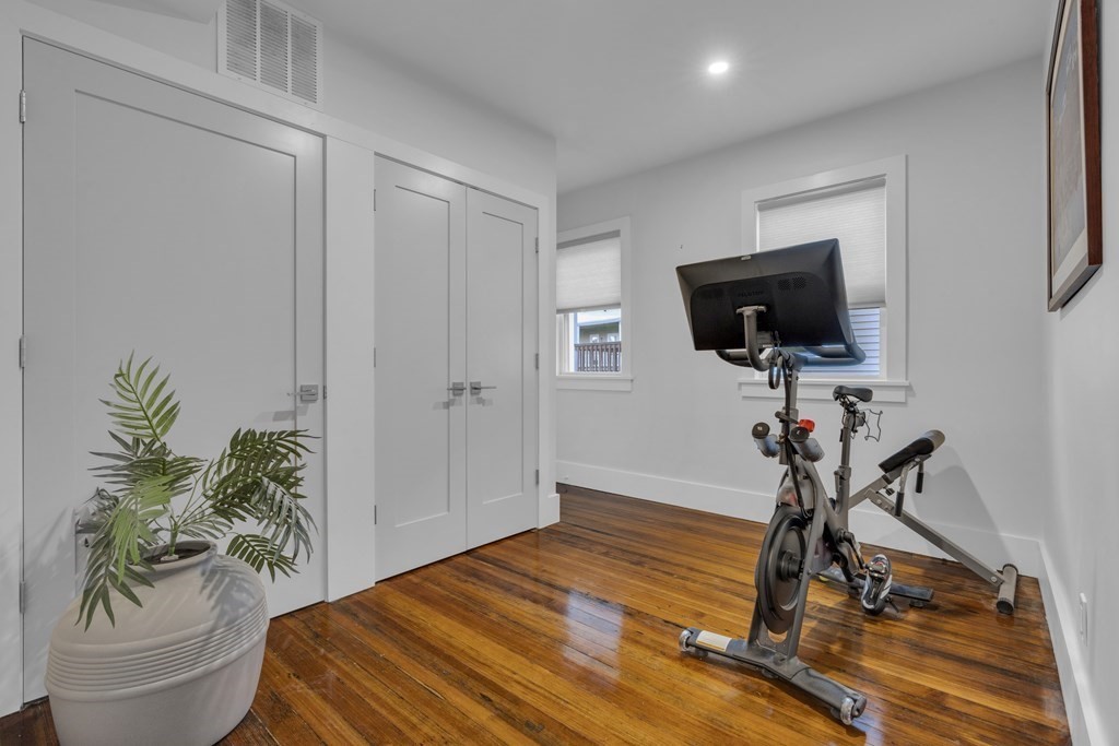 Fantastic Dorchester rental! Top floor two bed, one bath with a bonus space that's perfect for a home office or gym. Beautiful hardwood floors throughout and large windows allowing for ample natural light. Open floor plan with plenty of modern luxuries including smart thermostats and doorbell, surround sound system, and in-unit laundry. The contemporary kitchen features sleek cabinetry, white tile backsplash, and stainless steel appliances — dishwasher included. Both bedrooms are large enough for king-sized beds and include walk-in closets. To top it all off, the unit features two private decks on the front and back of the home. Public transit and highway access nearby. Convenient to all that Dorchester has to offer. AVAILABLE AUGUST 1!