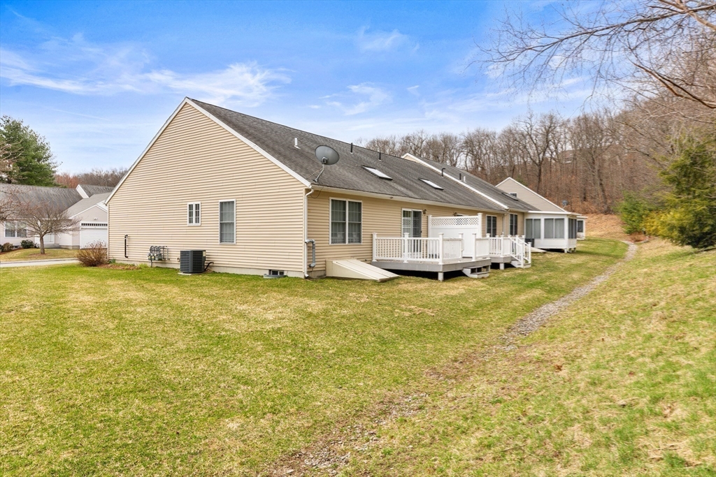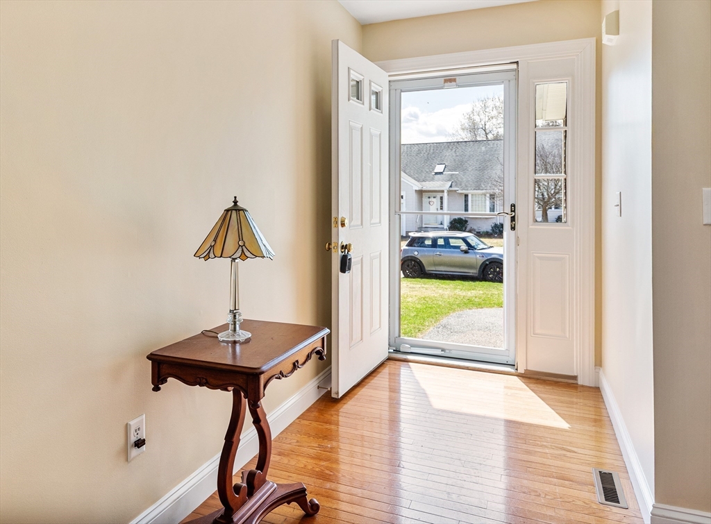 Welcome home to this beautiful 2-bedroom, 2-bath ranch-style end unit in a sought-after 55+ community. Offering easy single-level living, this home features gleaming hardwood floors and warm neutral paint freshly painted throughout creating a cozy, inviting feel. The open-concept kitchen boasts stainless steel appliances, ample cabinetry, and a center island perfect for casual dining or entertaining. The spacious, light filled living room features a skylight and sliders leading to a private backyard. The primary suite includes a full bath, while a second bedroom and additional full bath offer flexibility for guests or a home office. Enjoy central air, a full basement for storage or expansion, and an attached garage. Located in a well-established community, this home offers comfort, convenience, and low-maintenance living.