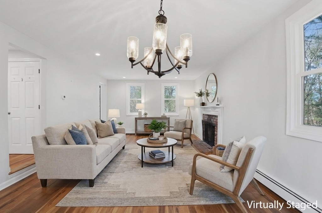 Welcome to this beautifully maintained 3-bedroom, 1.5-bath home in the highly sought-after Packet Landing community! Privately set on a gentle hill, this inviting property offers a peaceful retreat with a true single-family feel, surrounded by natural beauty and abundant light throughout. Step inside to a warm and welcoming main level featuring a cozy living room with a fireplace and sliding glass doors that fill the space with sunlight. The kitchen is thoughtfully updated with stainless steel appliances and recessed lighting, perfect for everyday living and entertaining. A convenient half bath and a main-level bedroom offer flexible living options.Upstairs, you’ll find two additional comfortable bedrooms and a full bath. Enjoy the deck overlooking a spacious yard with a storage shed. This home also includes deeded rights to the North River, where residents enjoy launching canoes and taking in tranquil water views. Just minutes from shopping, dining, and everyday conveniences.