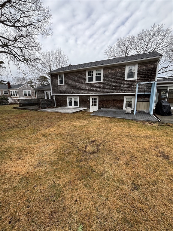 Welcome to your ideal Cape Cod retreat! This 3-bedroom, 1.5-bath multi-level home is located in the rarely available and highly sought-after New Silver Beach community—one of North Falmouth’s premier oceanside beach associations. Residents enjoy access to a private beach, tennis courts, a playground, and canoe/kayak racks, making it easy to embrace the quintessential Cape Cod lifestyle. With the beach just a short walk away, every day feels like a vacation. Step inside to discover a stunning sunroom featuring a cathedral wood clad ceiling and skylights that bathe the space in natural light. The inviting living room offers a perfect gathering spot with its fireplace and slider leading to the back deck. The walkout lower level expands your living space with an additional family room, half bath, and a bonus room—ideal for guests, a home office, or flexible living options. Outside, enjoy a fenced-in yard complete with an outdoor shower, perfect for rinsing off after sandy beach days.