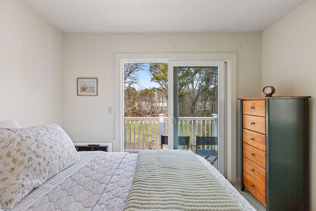 Welcome to carefree living overlooking gorgeous views of the Nicklaus Design golf course at Ocean Edge Resort, one of the Cape's most sought-after communities. This peaceful top floor end unit boasts a private deck uniquely positioned with no direct connection to neighboring units. Relax outside with a morning coffee to birdsong or dine al fresco with friends later in the day when the deck offers a shady refuge. Come inside & enjoy a sundrenched, open layout with a spacious living room boasting cathedral ceilings, a dedicated dining area & a well-equipped kitchen with granite countertops. This comfortable & inviting space is ideal for year-round living or a seasonal retreat. The cozy bedroom boasts a nook perfect for an office space and a walk-in closet. Recent exterior upgrades to the Fletcher condo community enhance both curb appeal & long-term value. Just moments from Brewster's beautiful Bay beaches, the bike path and local shopping and dining. Make this beautiful unit yours today!